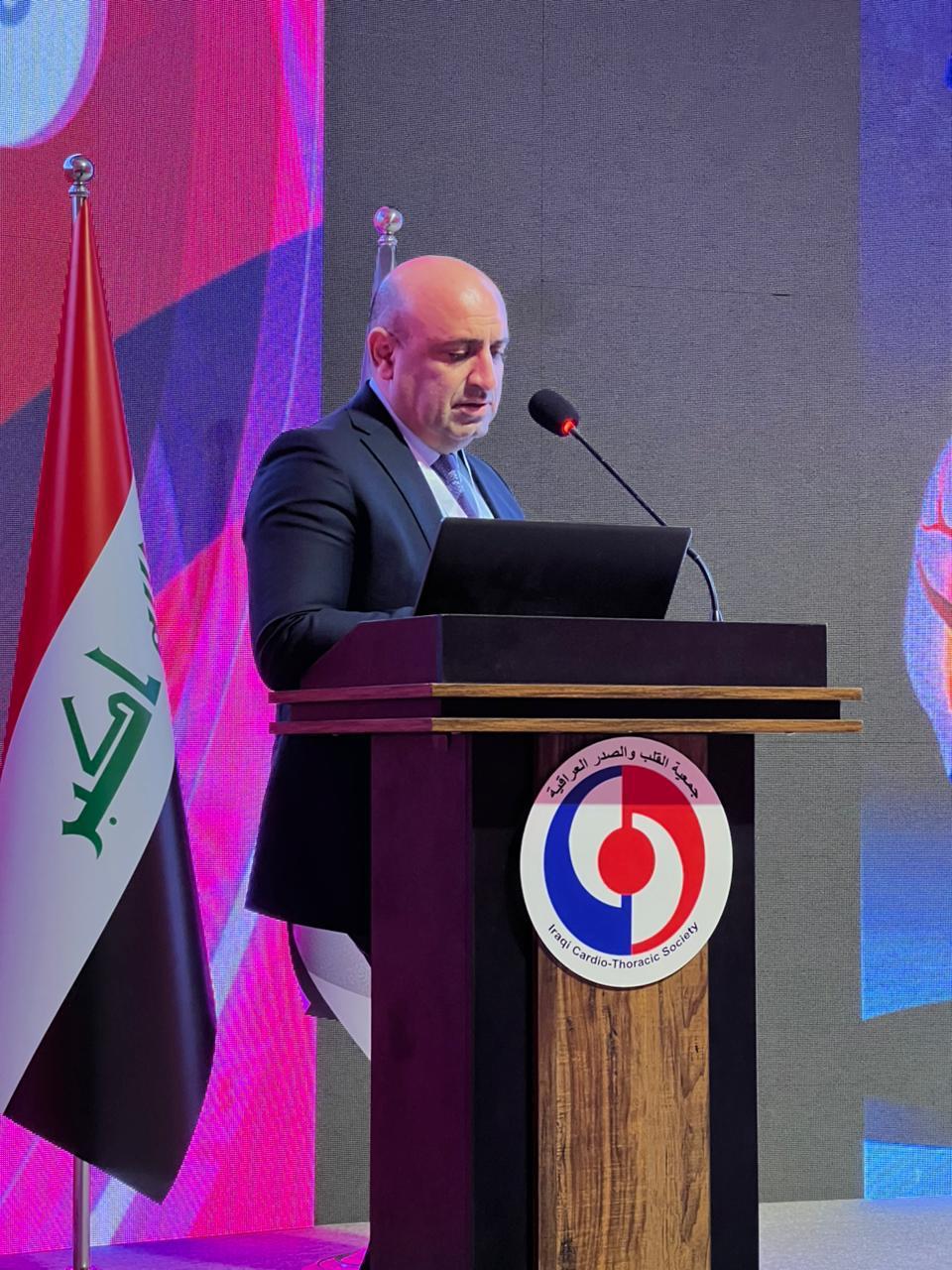 The conference also featured a live broadcast of a complex coronary artery catheterization case from the city of Sulaymaniyah, performed by Dr. Aram Jamal Mirza, a lecturer at the College of Medicine at Al-Ayen Iraqi University and a consultant in cardiology and catheterization interventions.