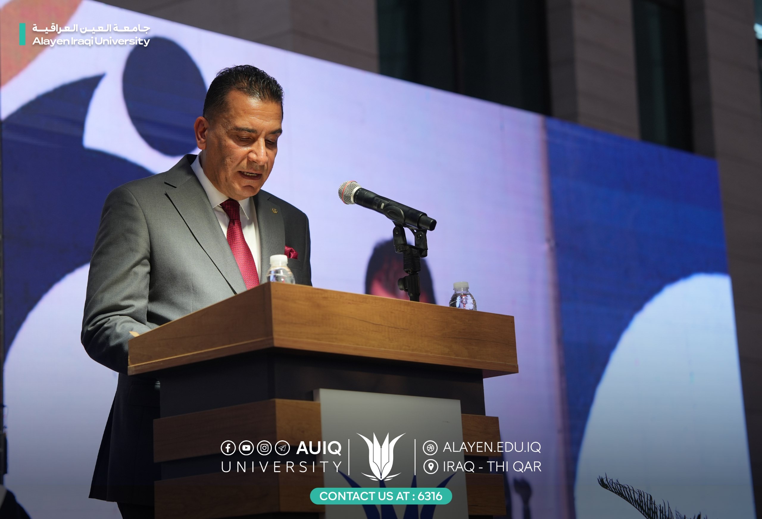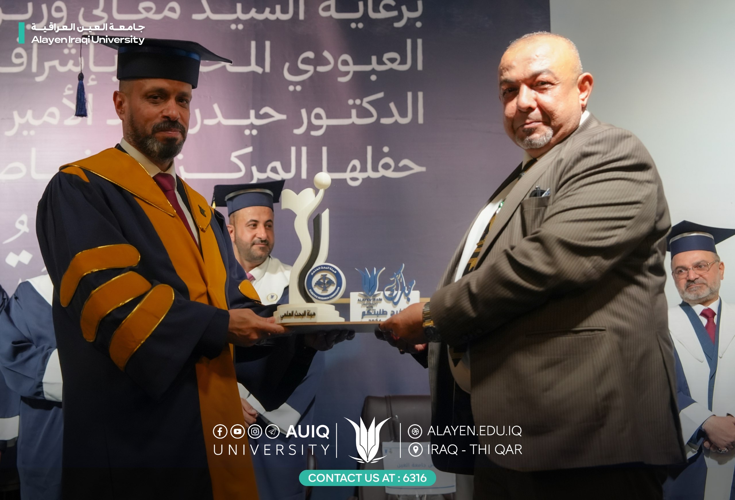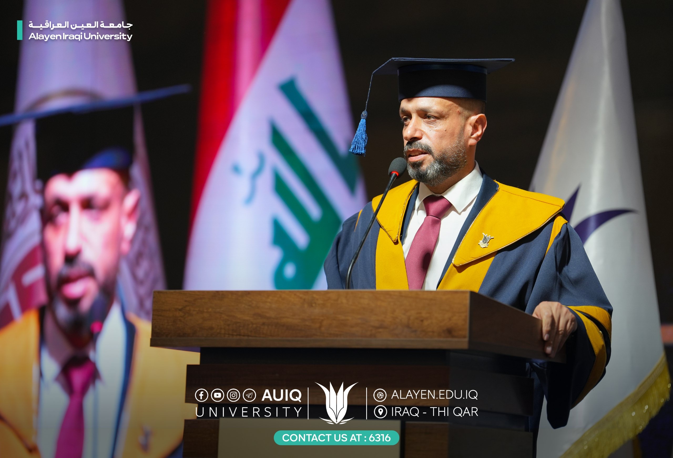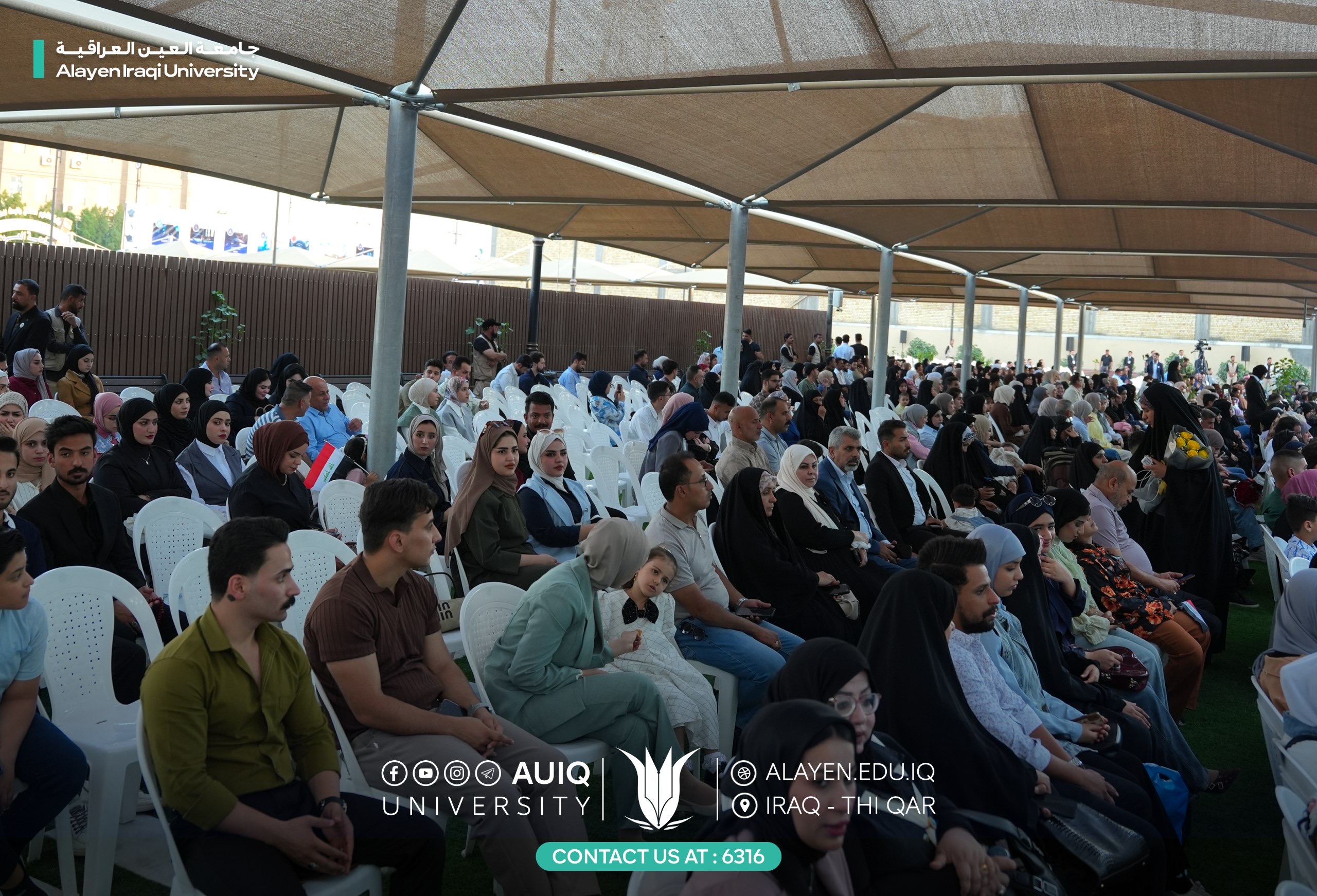 Al-Ayen Iraqi University held studens' central graduation ceremony for the academic year 2024-2025, attended by the Advisor to the Ministry of Higher Education and Scientific Research, representing His Excellency the Minister, the President of the Scientific Research Authority, the Governor of Dhi Qar, his First Deputy, and the presidents of the universities of Dhi Qar, Sumer, and Shatrah, as well as a number of assistant university presidents, deans, and directors of official departments in Dhi Qar Province. The ceremony was held in a festive atmosphere that embodied the students' joy at the fruits of their academic years and continuous efforts.