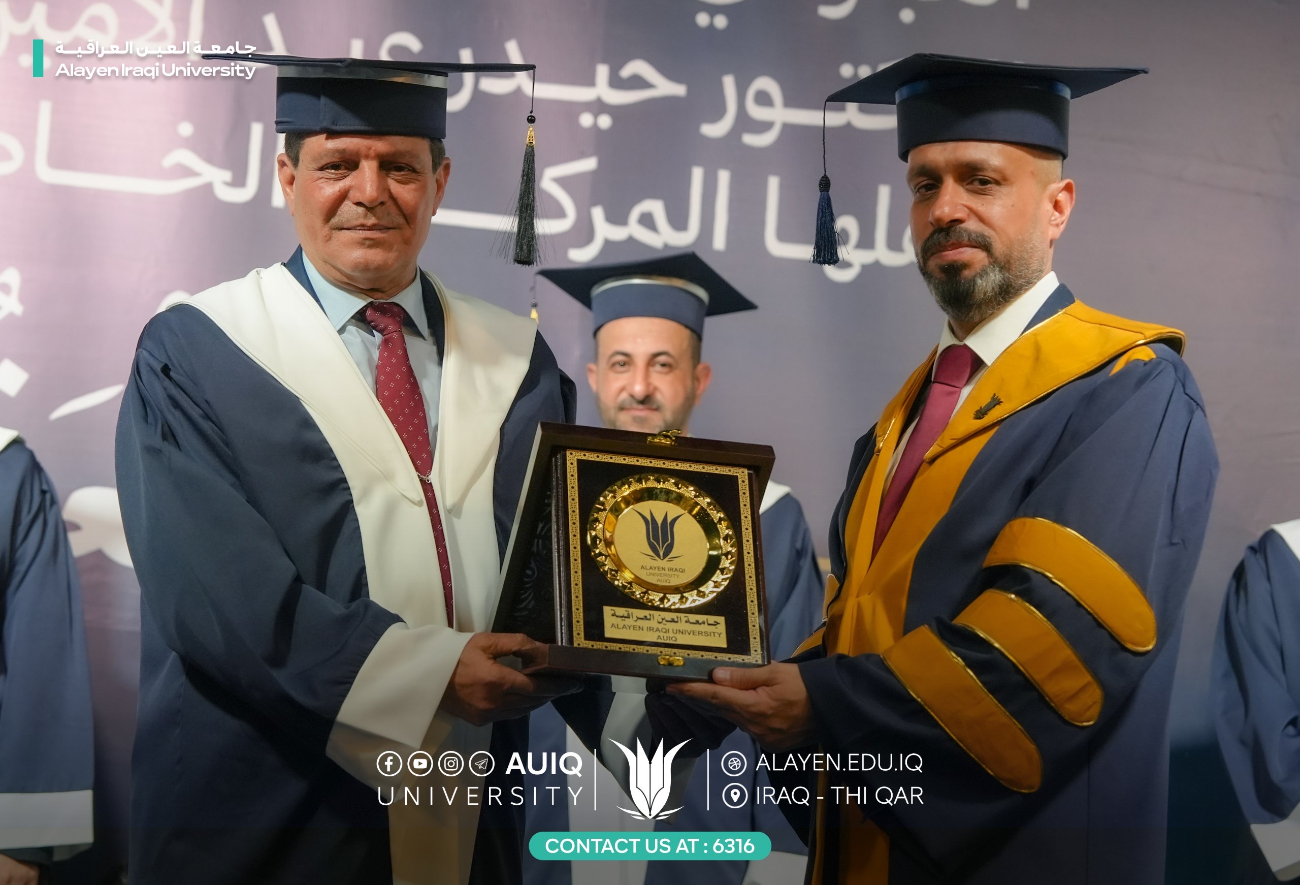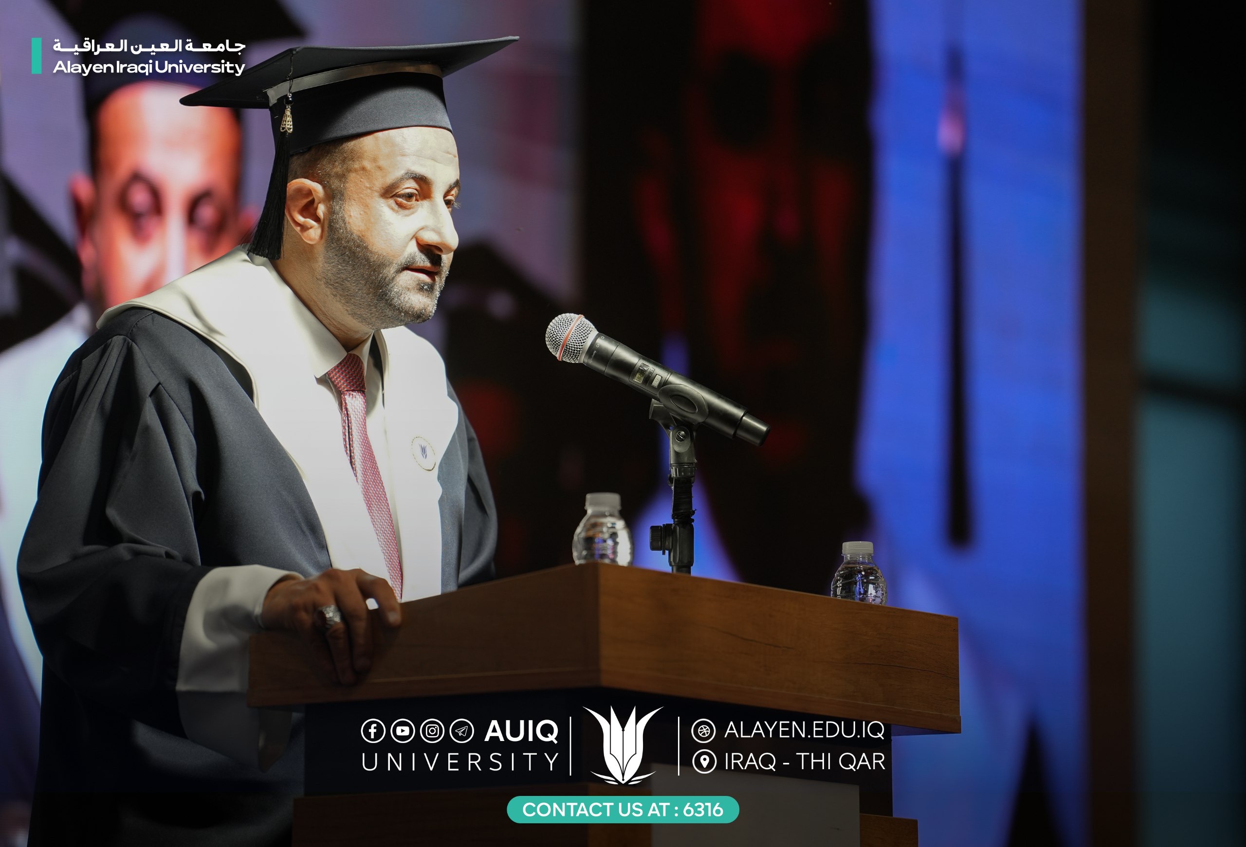 The remaining photos and videos of the central graduation ceremony will be published on Al-Ayen University's official platforms, documenting this distinguished academic event, demonstrating the efforts made in organizing it, and commemorating the moments of pride and honor embodied by our dear students and esteemed guests at this joyful scientific event.