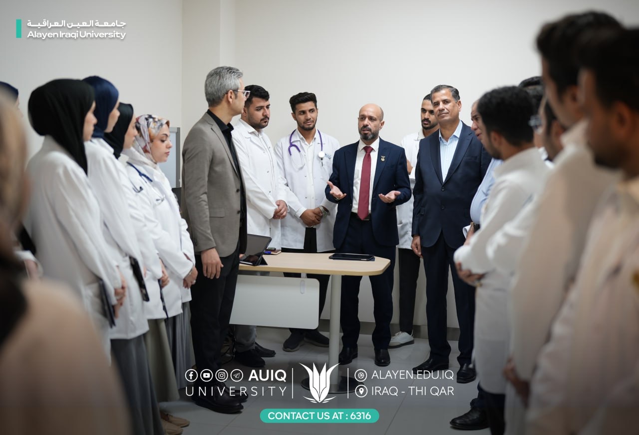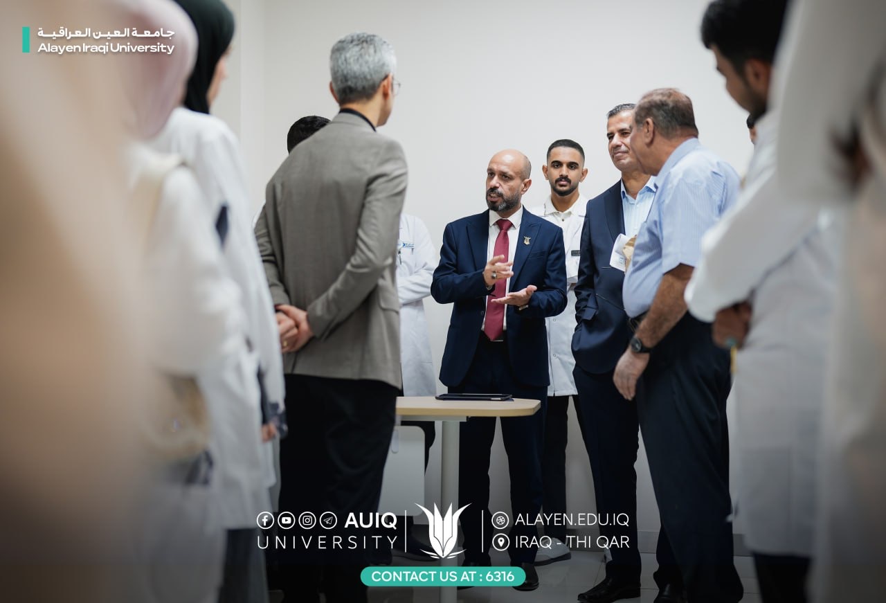 On October 7, 2025, the Chancellor of Al-Ayen Iraqi University of Iraq, Professor Haider A. Marhoon conducted a field tour of the College of Medicine. He met with the Dean of the College, Prof. Adnan Taan Thamer, and a number of administrative staff. He was briefed on the progress of the educational process in the classrooms and medical laboratories, emphasizing the importance of providing an integrated academic environment that keeps pace with scientific developments.