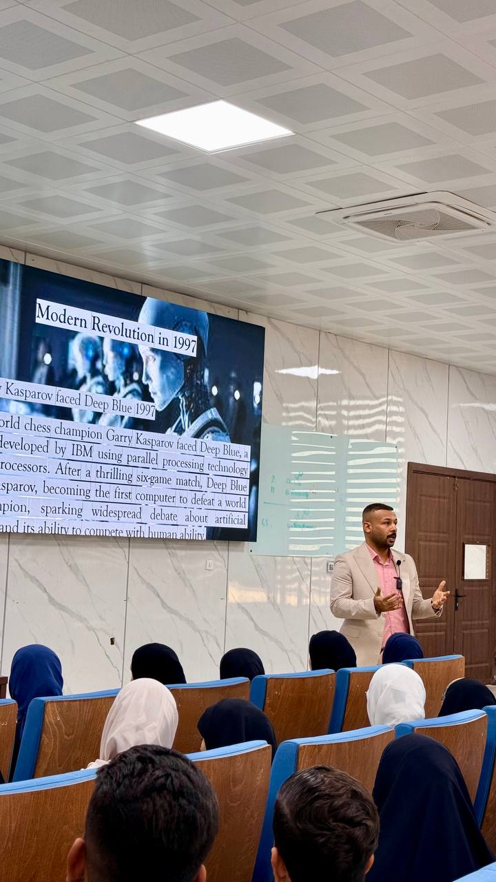 The workshop aimed to highlight the concept of artificial intelligence and its developments throughout history, from a theoretical idea to a technological revolution that contributes to the advancement of various aspects of life.