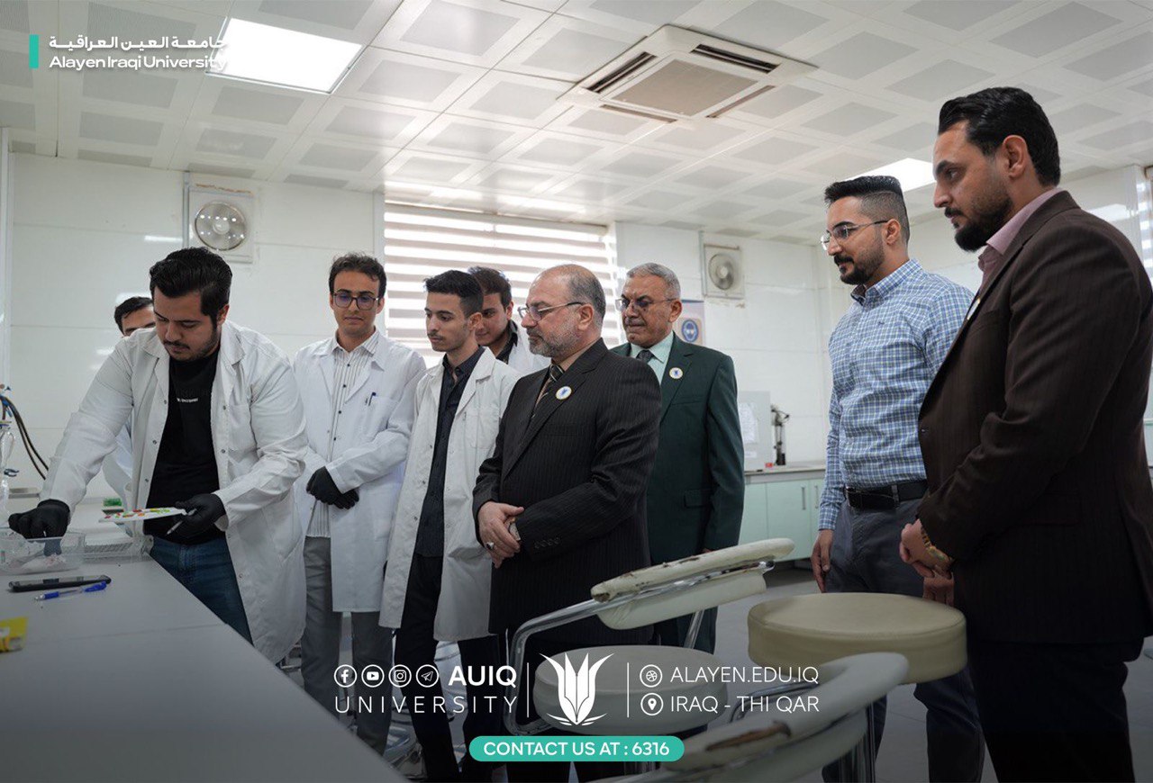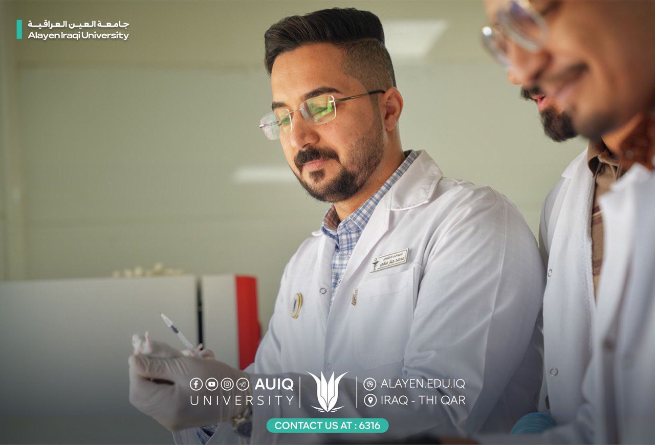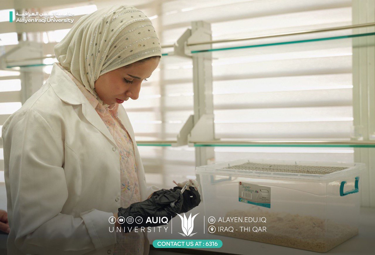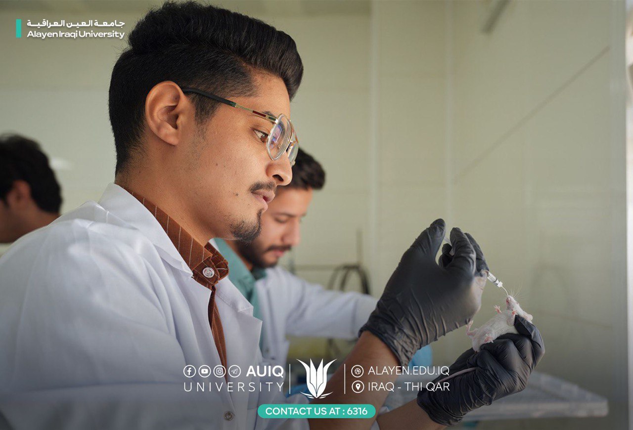 In the context of the practical activities for students of the College of Pharmacy at Al Ayen University and under the patronage of the esteemed Dean of the College Asst. Dr. Haid Hamid Abbas, a practical training session, was conducted today in the Pharmacology and Toxicology Laboratory under the supervision of the Laboratory Supervisor Asst. Lecturer Muhammad Jabbar Makki. The students were informed about methods for administering medications to laboratory animals using various techniques, with an explanation of the scientific and research aspects of each method.