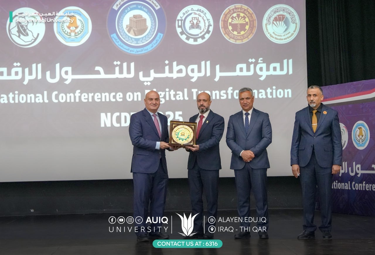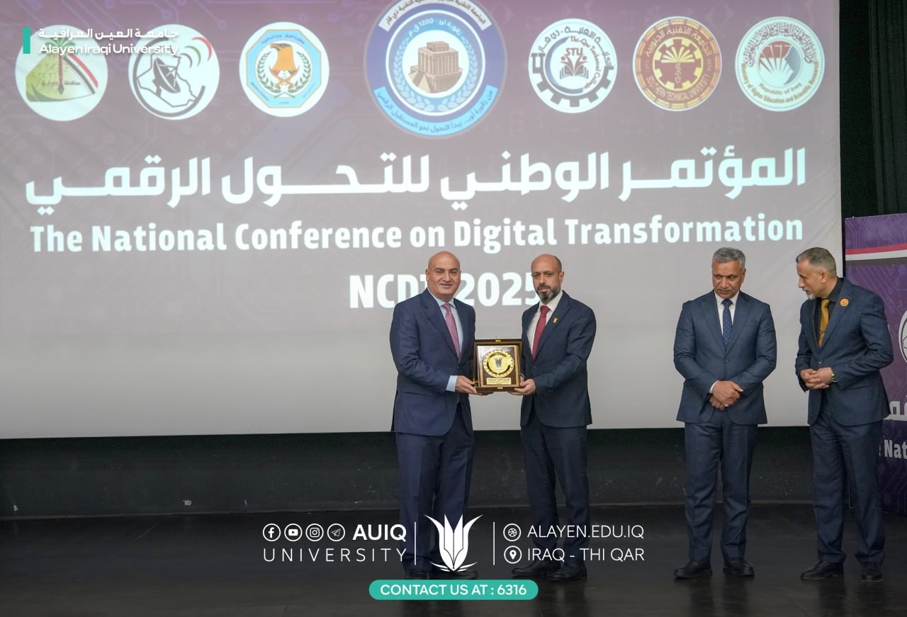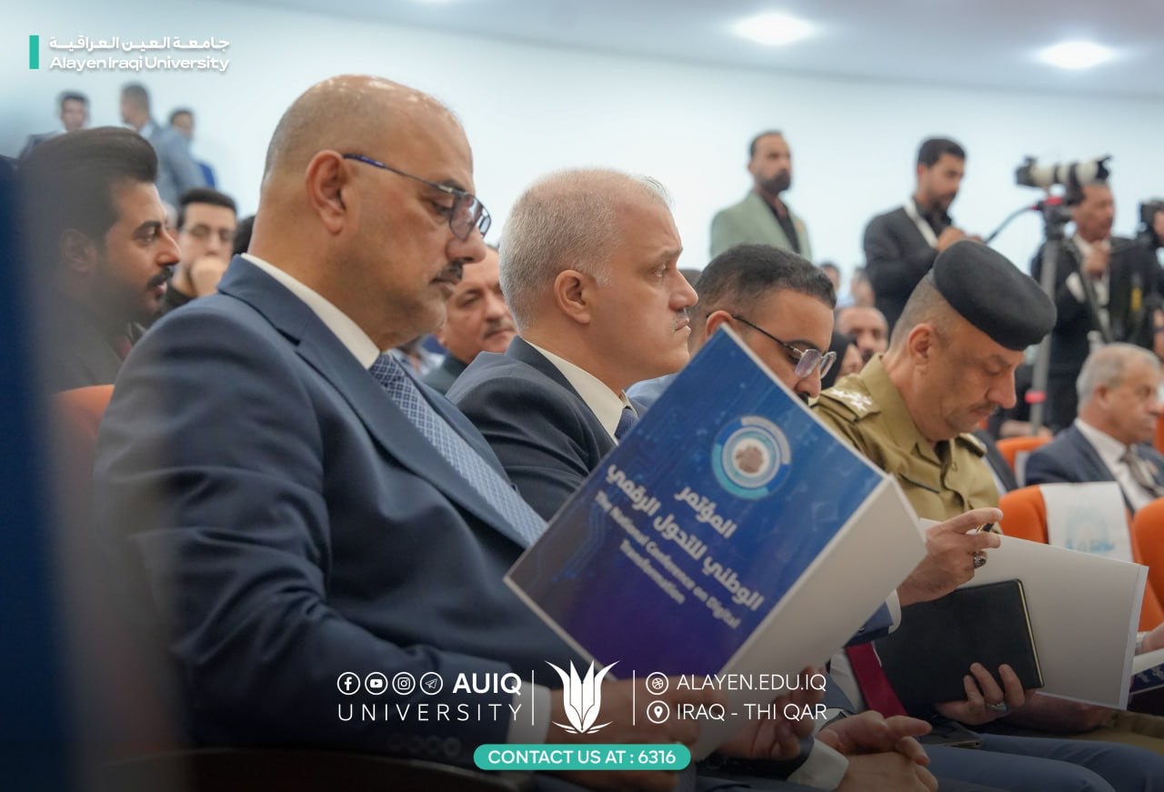 On Thursday, October 23, 2025, the Chancellor of Al-Ayen Iraqi University Prof. Dr. Haider A. Marhoon and his Deputy for Academic Affairs Prof. Dr. Naseer Ali Hussein participated in the National Digital Transformation Conference at the Dhi Qar Technical College.