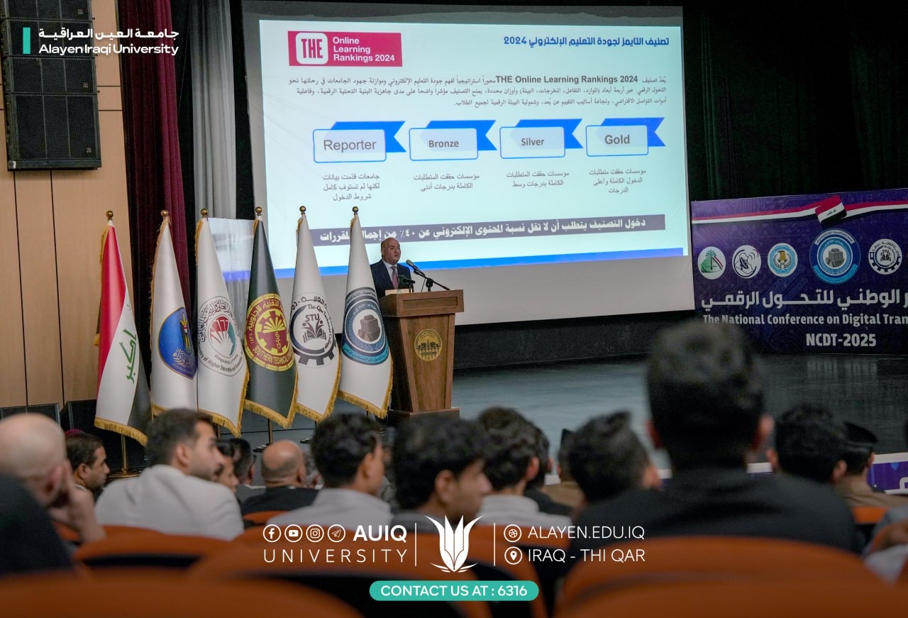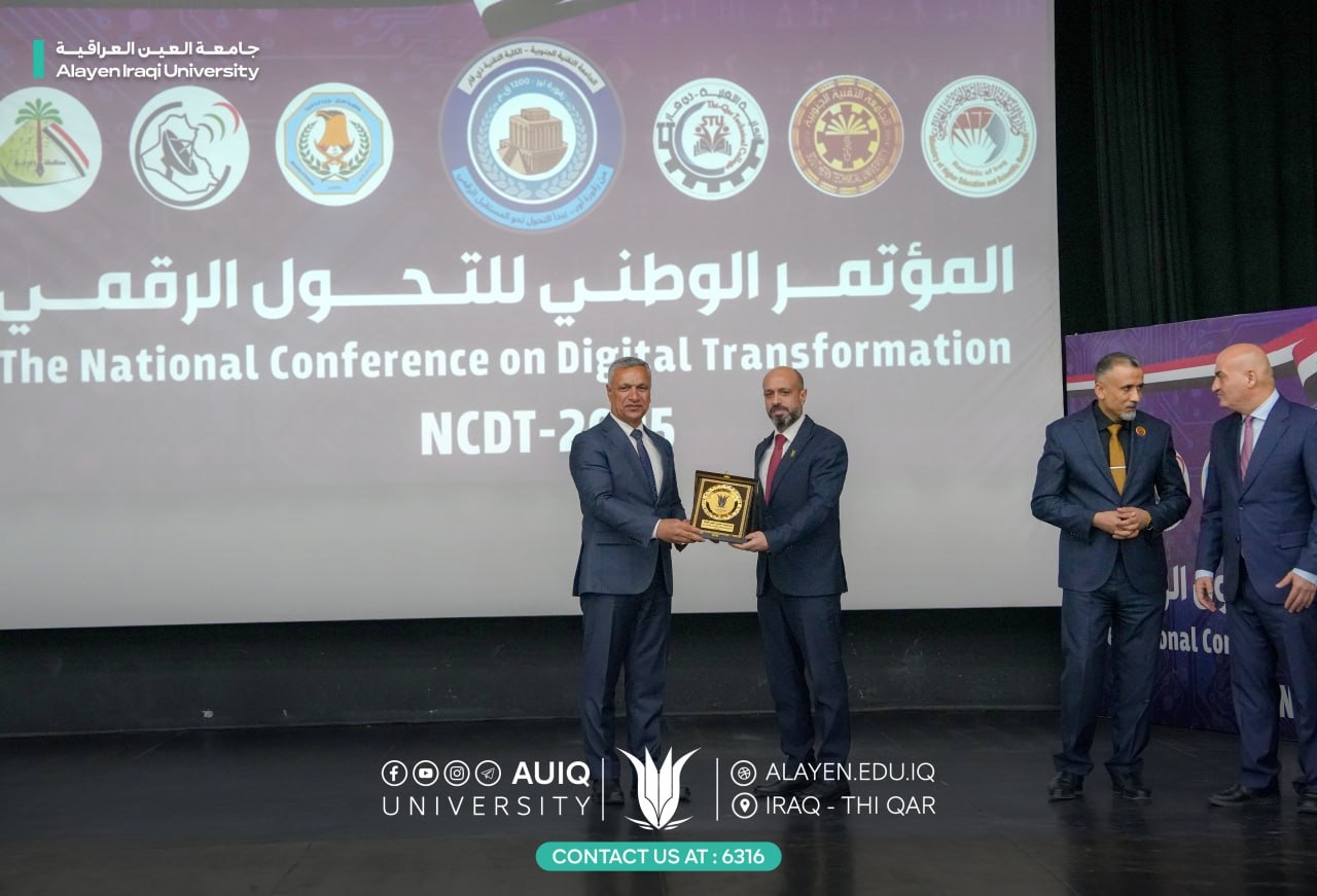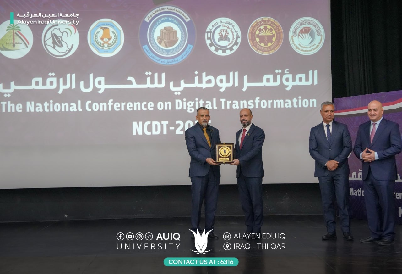 On Thursday, October 23, 2025, the Chancellor of Al-Ayen Iraqi University Prof. Dr. Haider A. Marhoon and his Deputy for Academic Affairs Prof. Dr. Naseer Ali Hussein participated in the National Digital Transformation Conference at the Dhi Qar Technical College.