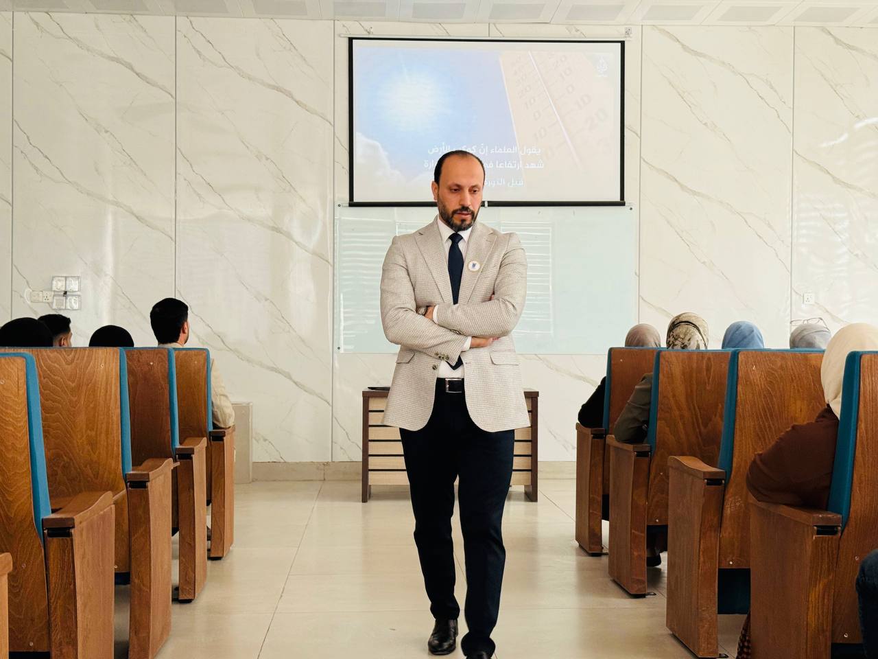 The lecture was delivered by Dr. Hussein Abid Dakhil, Head of the Department of Dental Technology. He addressed the interconnectedness of climate change, human health, and the global economy, highlighting the impact of climate change on the spread of disease, declining productivity, and rising healthcare costs.