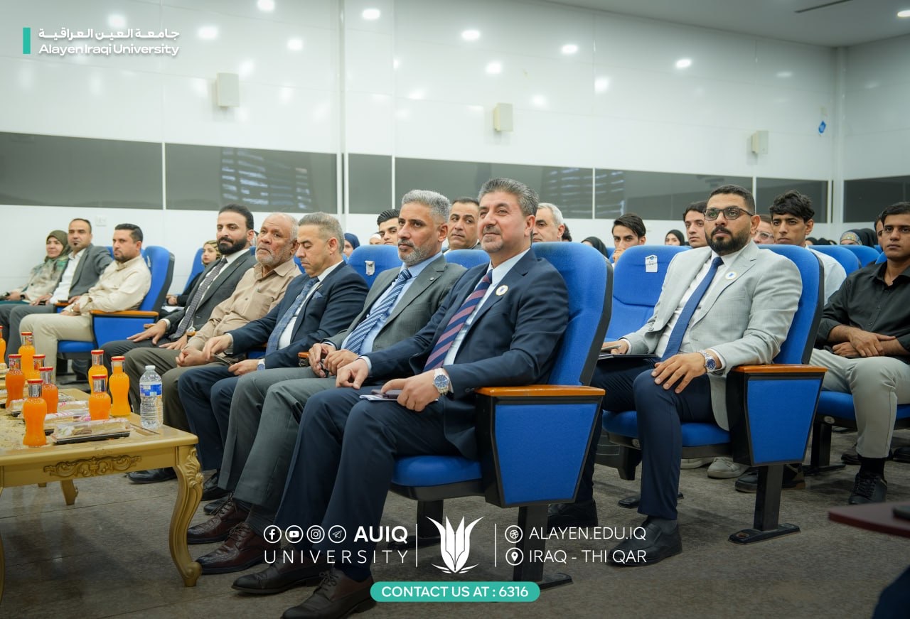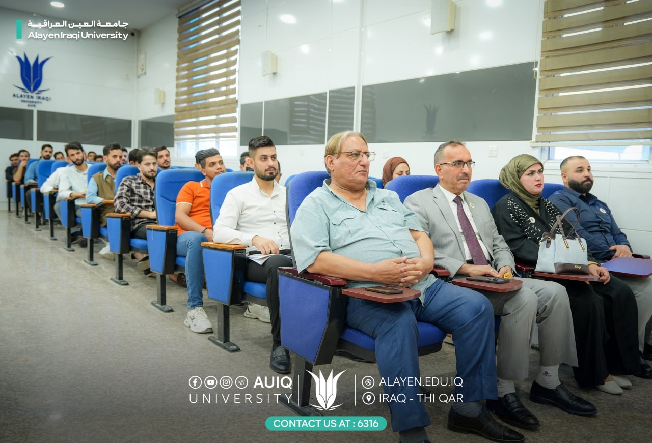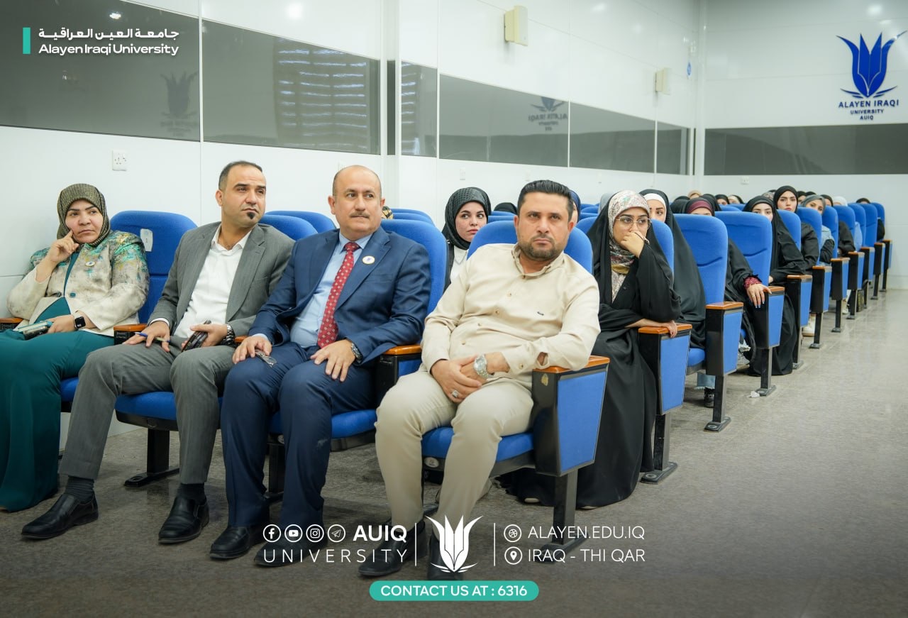 The lecture was attended by Prof. Dr. Imad A. Al-Mousawi Dean of the College of Education for Pure Sciences at the University of Dhi Qar, Dr. Adnan H. Al-Rikabi Deputy Dean for Scientific Affairs, Professor Muhammad Nazzal Deputy Dean for Student Affairs, Dr. Musa Muhammad Mahdi Head of the Physics Department and Dr. Faisal A. Awda Head of the Art Education Department at the College of Education at Al-Ayen Iraqi University, and a number of faculty members and students.
