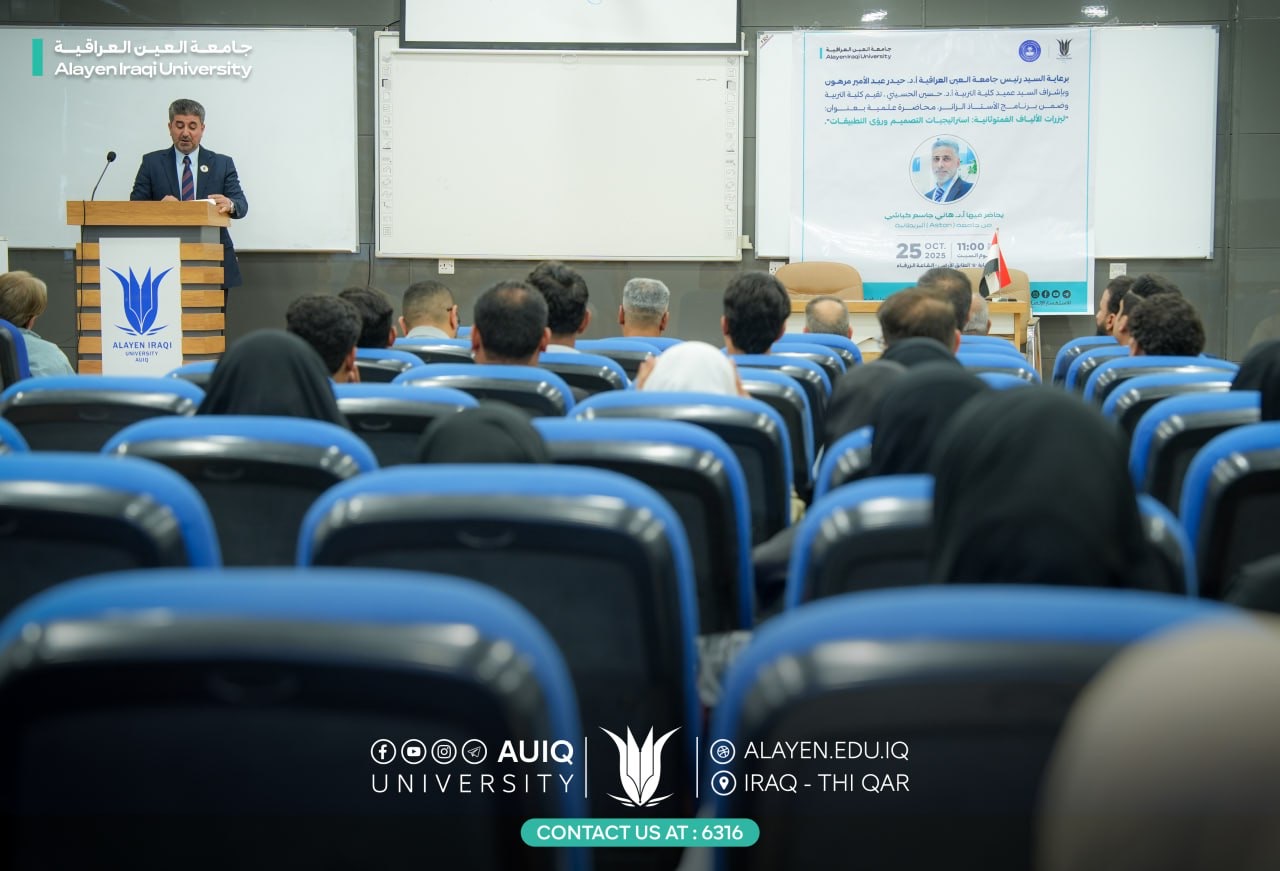 Under the patronage of the Chancellor of Al-Ayen Iraqi University Prof. Dr. Haider A. Marhoun, and under the supervision of the Dean of the College of Education Prof. Dr. Hussein Al-Husseini, the College of Education, organized a scientific lecture on October 25, 2025, as part of the Visiting Professor Program entitled "Femtosecond Fiber Lasers: Design Strategies and Application Visions."