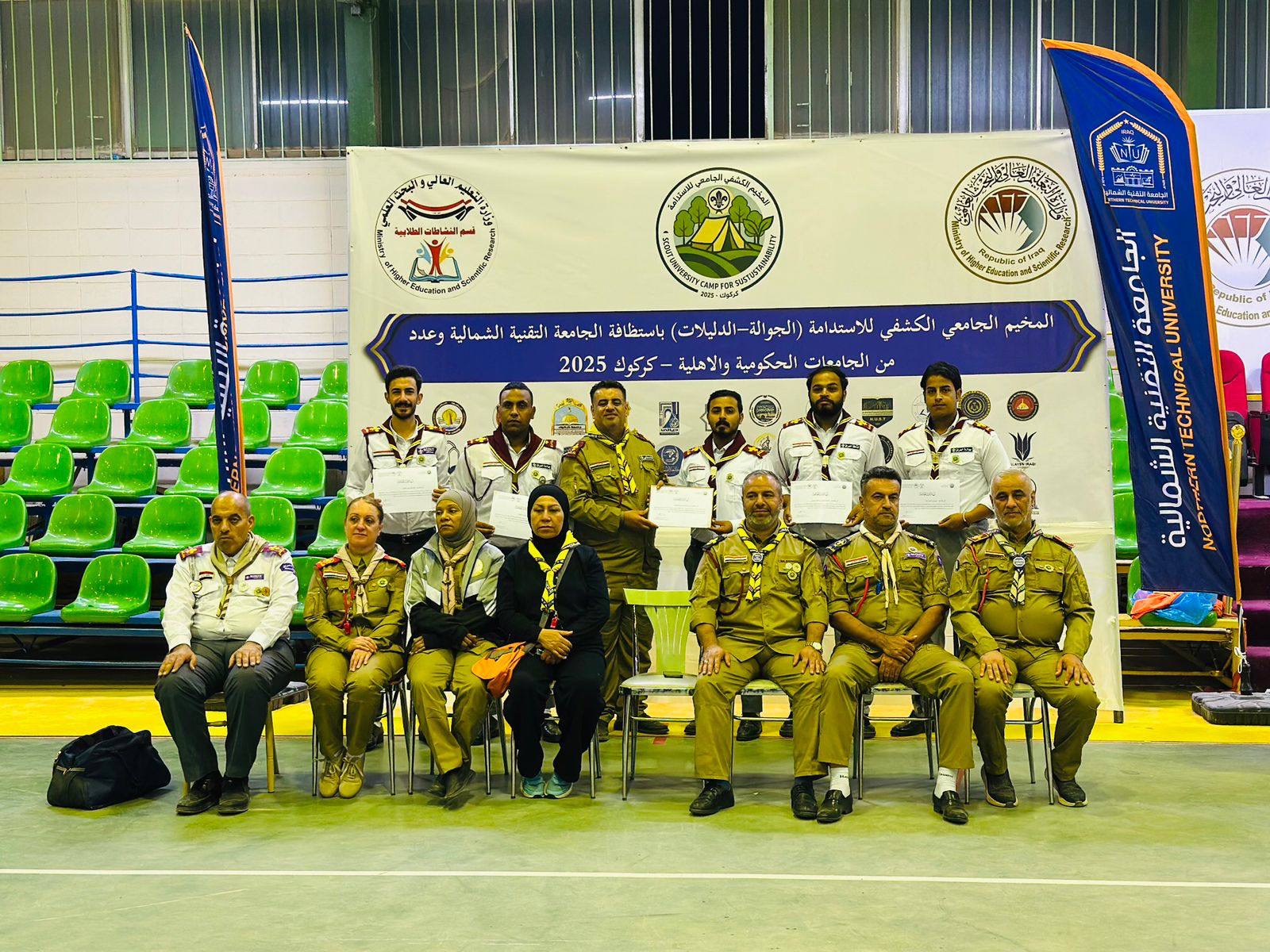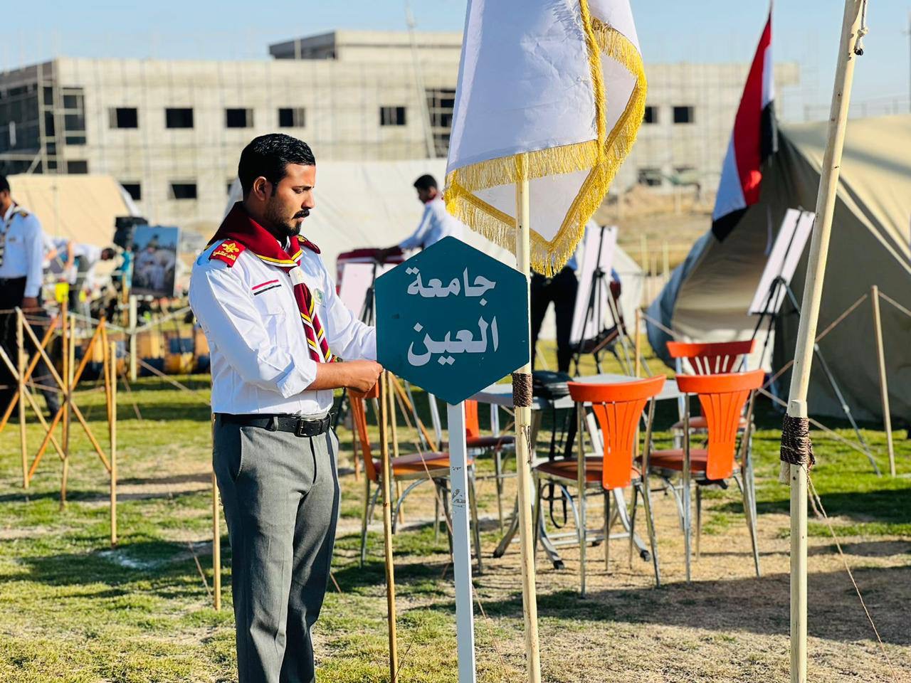 The Student Activities Department at Al-Ayen Iraqi University achieved first place at the University Scout Camp for Peaceful Coexistence, organized by the Student Activities Department of the Scientific Supervision and Evaluation Authority and hosted by the Northern Technical University in Kirkuk Province. The camp witnessed the participation of scouts from various Iraqi universities.