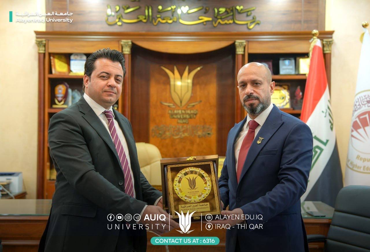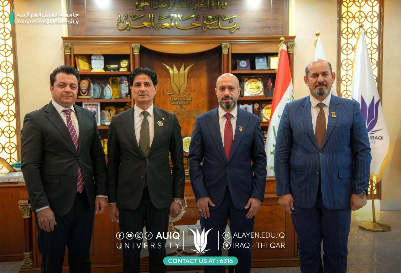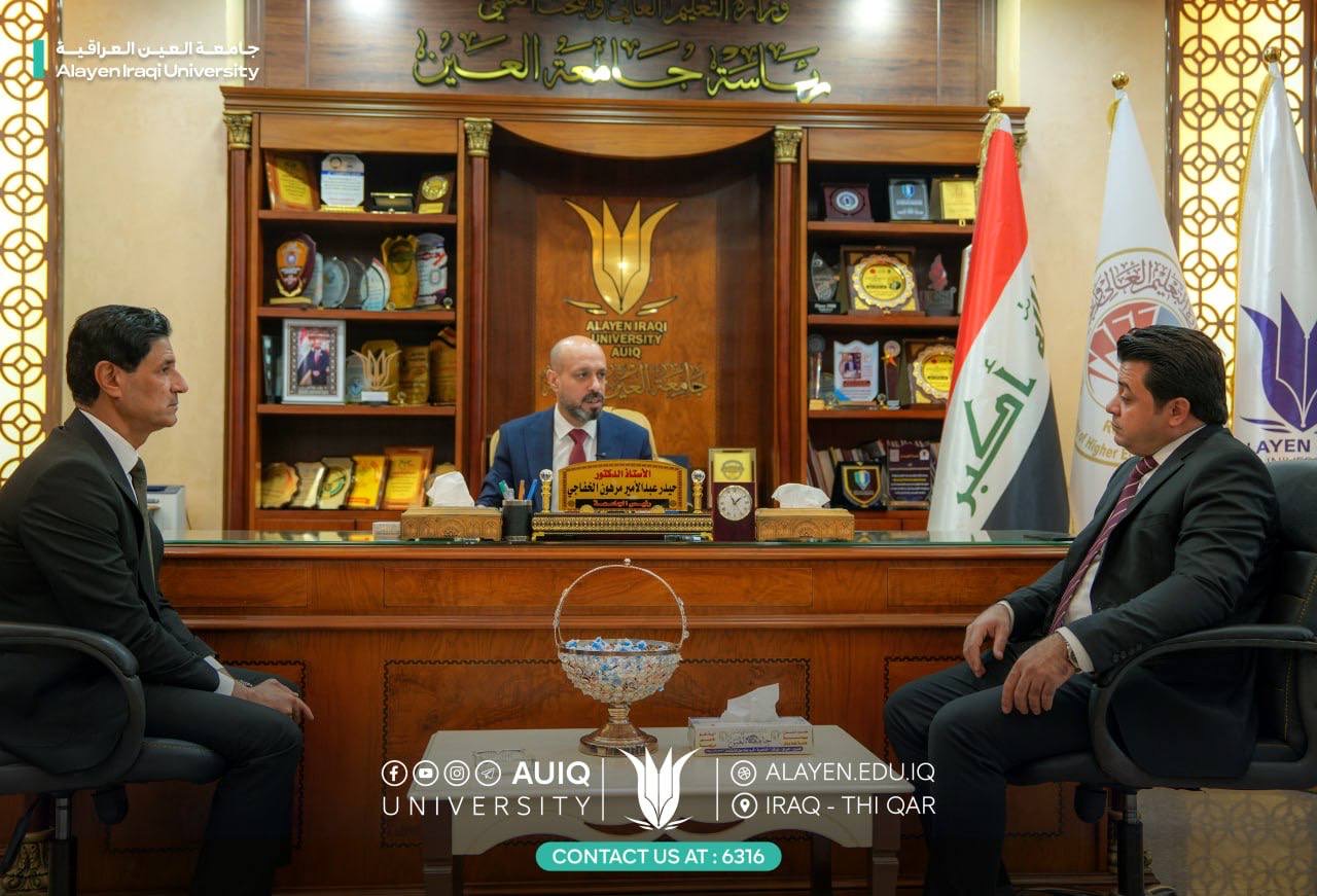 On November 3, 2025, the Chancellor of Al-Ayen Iraqi University, Prof. Dr. Haider A. Marhoon received a delegation from the Iraqi Department of Reformation, Ministry of Justice. The delegation, headed by the Director of the Department of Relations, Mr. Abbas Barisim Kitan, and accompanied by the Director of Nasiriyah Central Prison, Mr. Hussein Ahmed Abniya expressed their gratitude for the university's initiative to provide 50 free seats for inmates at Nasiriyah Central Prison.