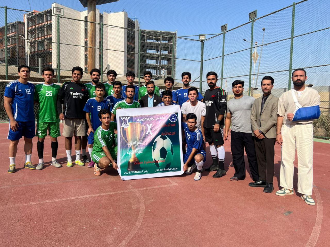 The College of Education witnessed an exciting and enjoyable match today as part of the academic departments' championship. The English Language Department emerged victorious after a remarkable performance and high level of sportsmanship from all the players. The department's team displayed a fantastic level of play in both attack and defense, maintaining control of the match until the final whistle.