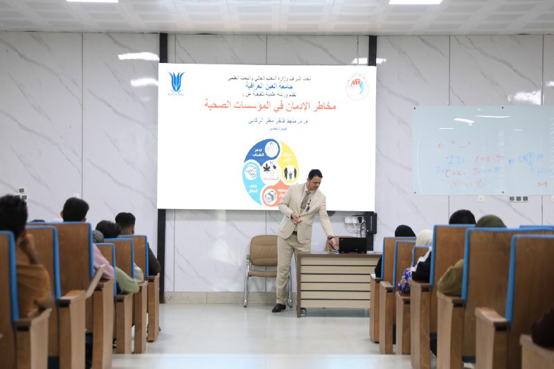 The College of Health and Medical Technologies at Al-Ayen University, in cooperation with the Continuing Education Center, organized the second day of activities, which included a specialized workshop entitled: "The Dangers of Addiction to Prescription Medications."