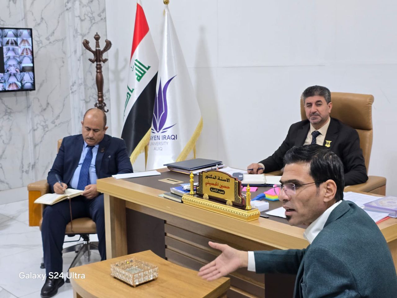 The College of Education Council at Al-Ayen Iraqi University hosted Dr. Ali Al-Tamimi, Director of the Quality Assurance and Academic Performance Department, and members of the Central Scientific Committee, along with Professor Dr. Imad Al-Din Al-Mutawalli, Director of the Quality Assurance Division at the college, on Tuesday, November 18, 2025. The meeting was dedicated to discussing the development of the college's academic system.