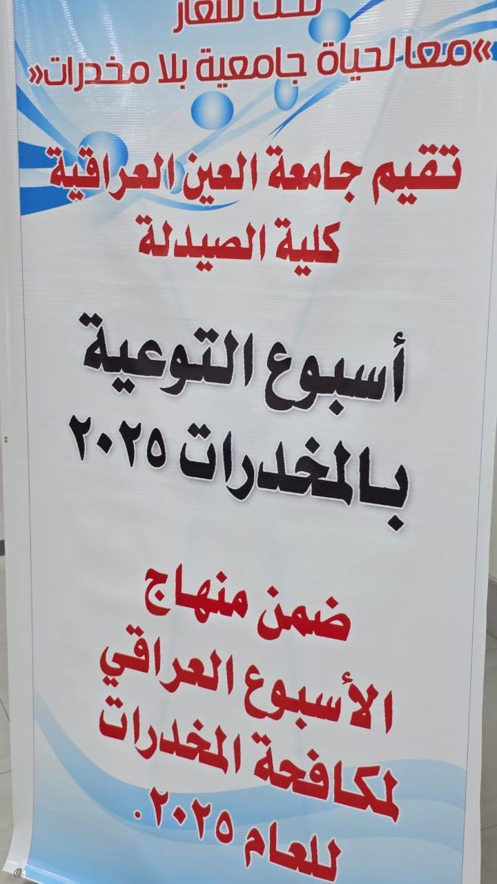 The College of Pharmacy at Al-Ayen Iraqi University concluded its drug awareness activities as part of the 2025 Iraqi Anti-Drug Week. These activities aimed to promote health, psychological, and social awareness of the dangers of addiction and to reinforce the university's role in serving the community.