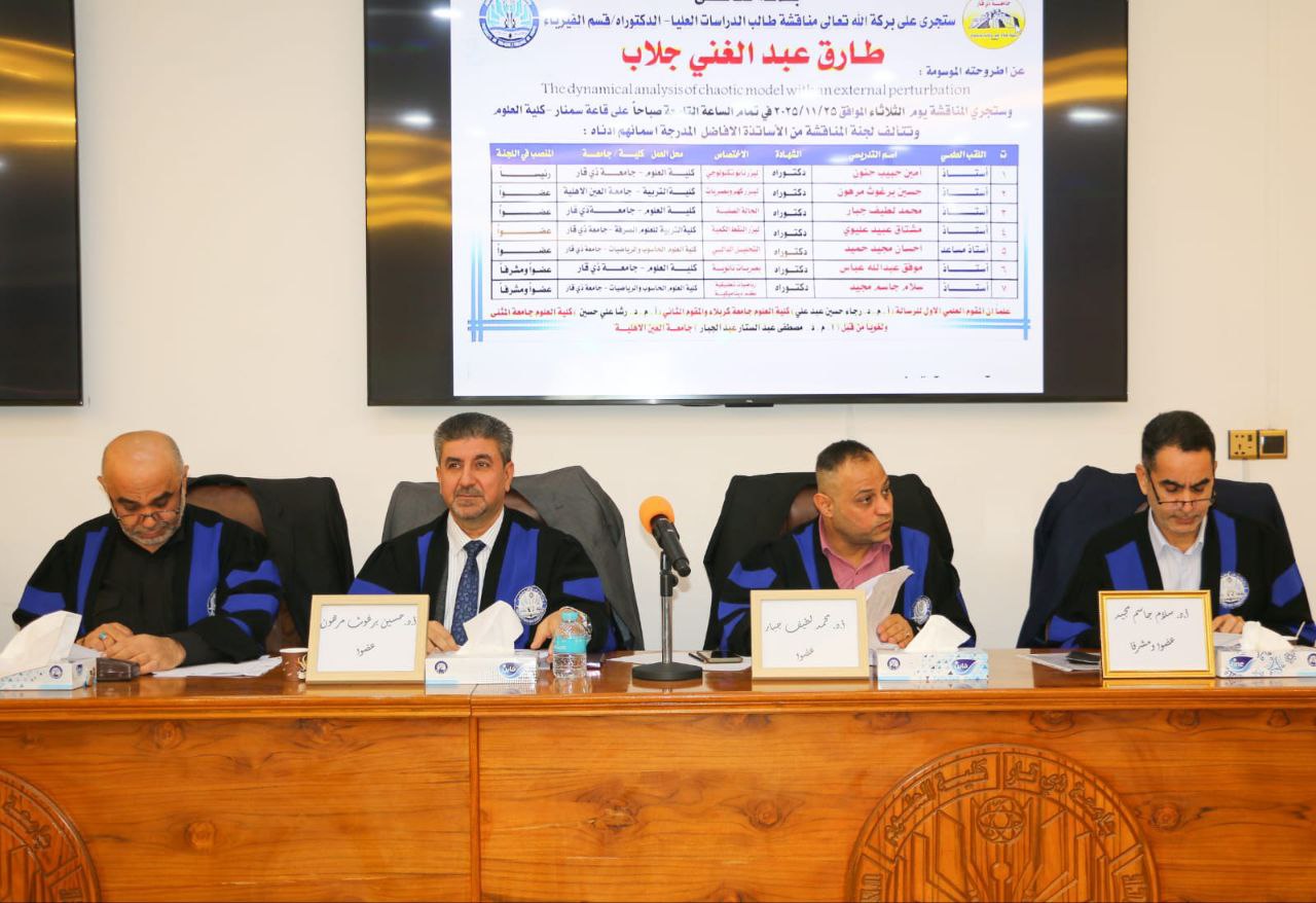 Prof. Dr. Hussein Al-Husseini, Dean of the College of Education at Al-Ayen Iraqi University, participated today, Tuesday, November 25, 2025, in the discussion of a doctoral dissertation at the College of Science, University of Dhi Qar, as a member of the examining committee.
