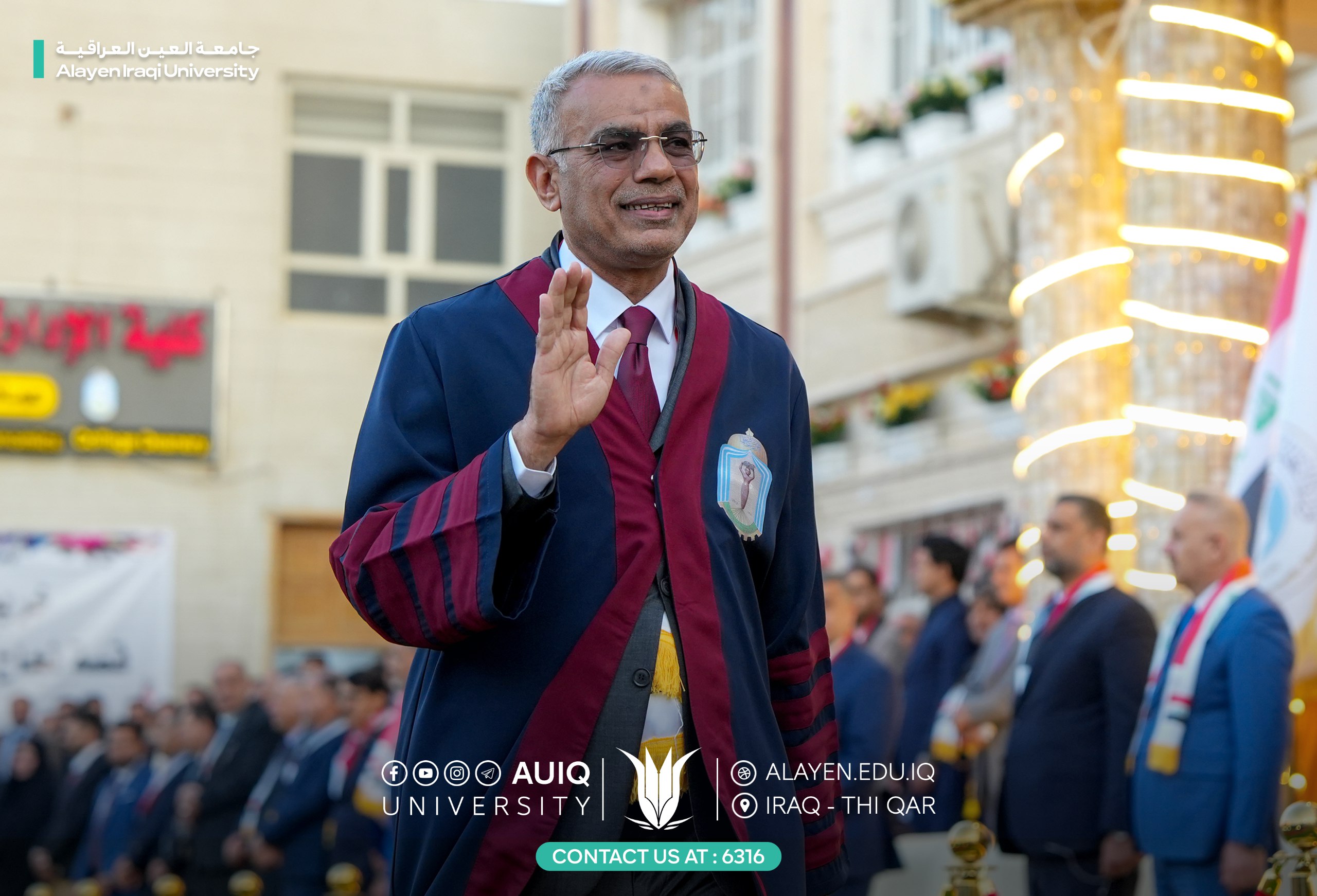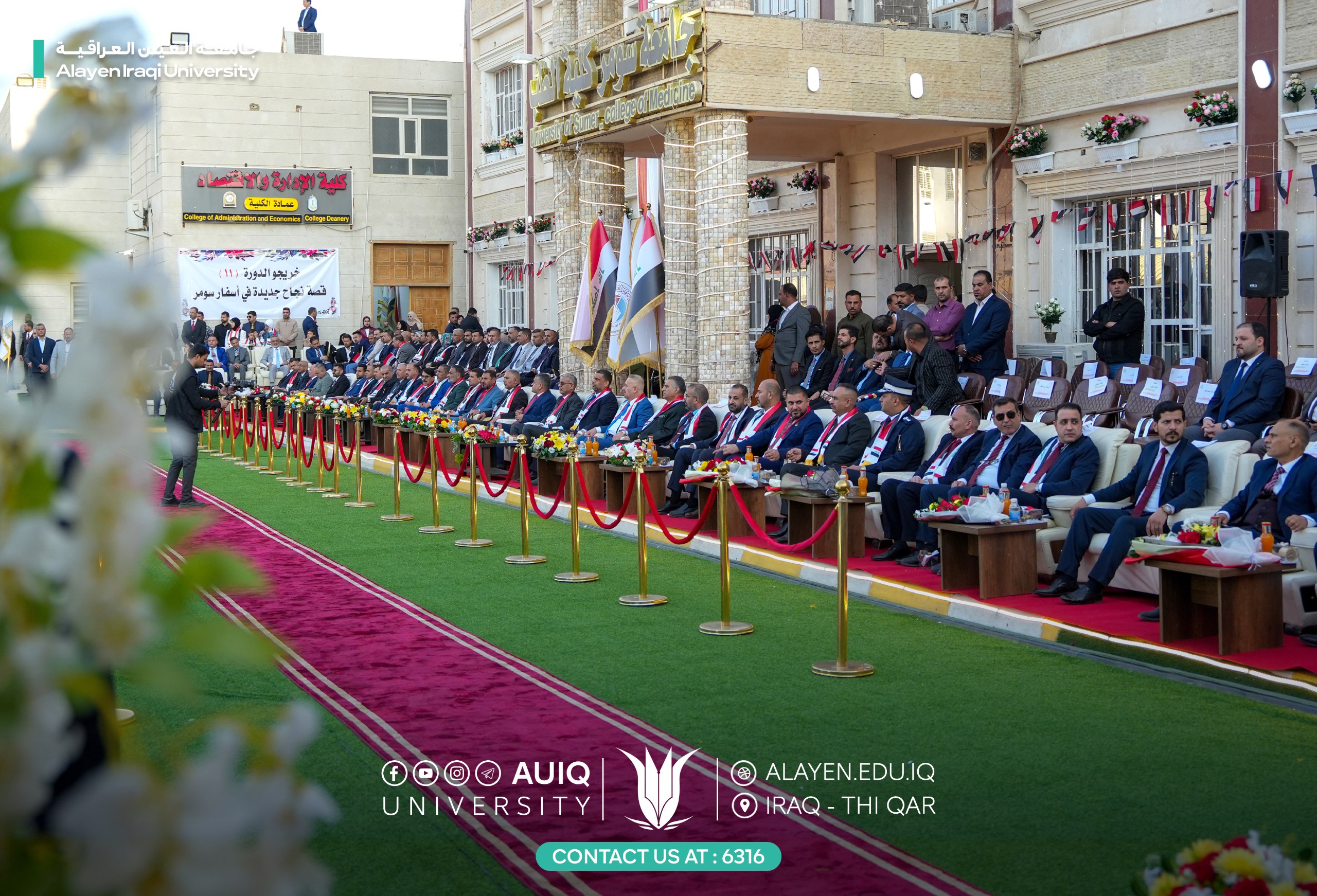 The Deputy Chancellor for Academic Affairs of Al-Ayen Iraqi University, Prof. Dr. Naseer A. Hussein participated in the graduation ceremony of the eleventh graduation batch of Sumer University. The ceremony was held under the patronage of His Excellency, the Minister of Higher Education and Scientific Research, Dr. Naeem Al-Aboudi, and was attended by an enormous number of officials and academics, including members of Parliament, university presidents and their council members, and the graduates' families.