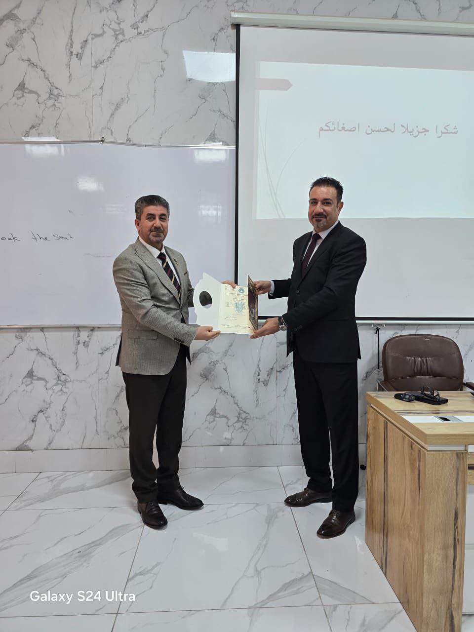 The course was attended by Prof. Dr. Habib Harz Alawi from the College of Science at Thi Qar University, who delivered a valuable lecture addressing the prominent educational guidelines and ethical conduct that must be adhered to, and their impact on enhancing the image of university students and the standing of the educational institution.