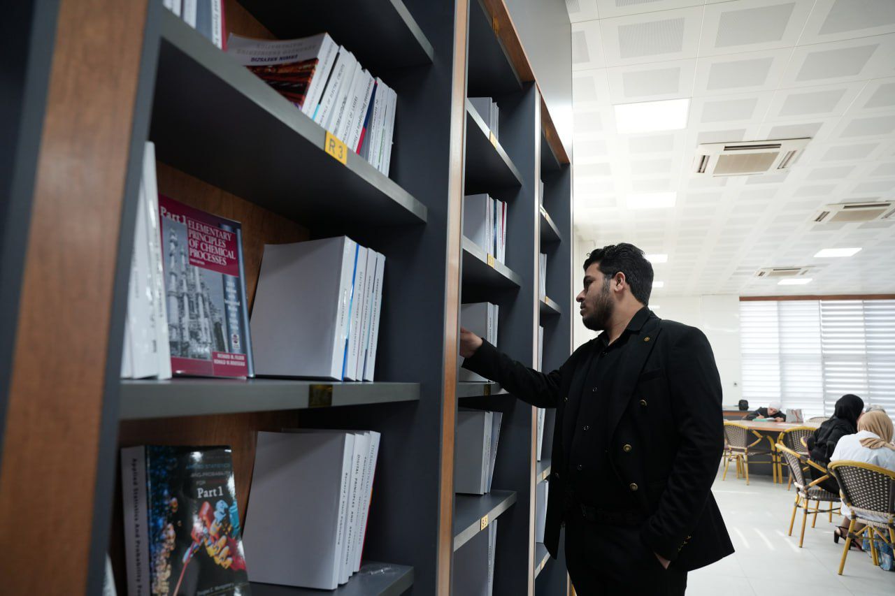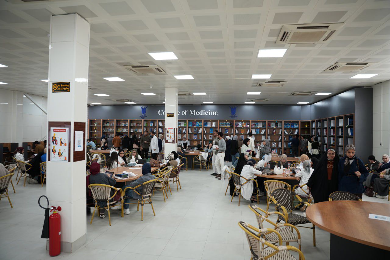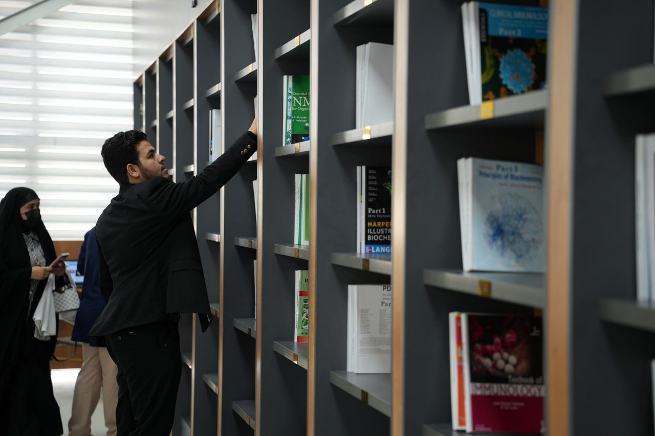 The library possessing a wide range of reputable academic references and internationally accredited books, in addition to quiet study rooms, dedicated spaces for team work, and a well-organized borrowing system that facilitates students' access to the information they need for their academic and research endeavors.
