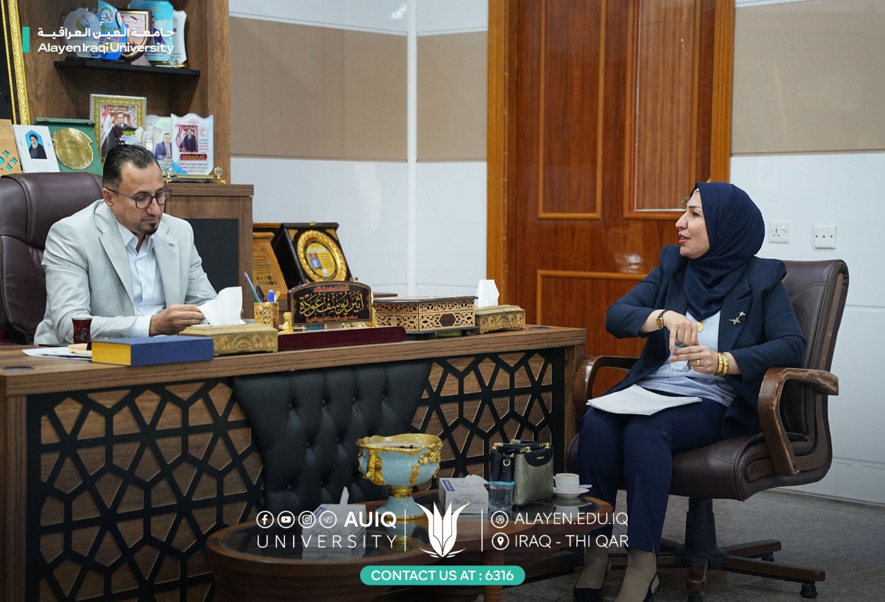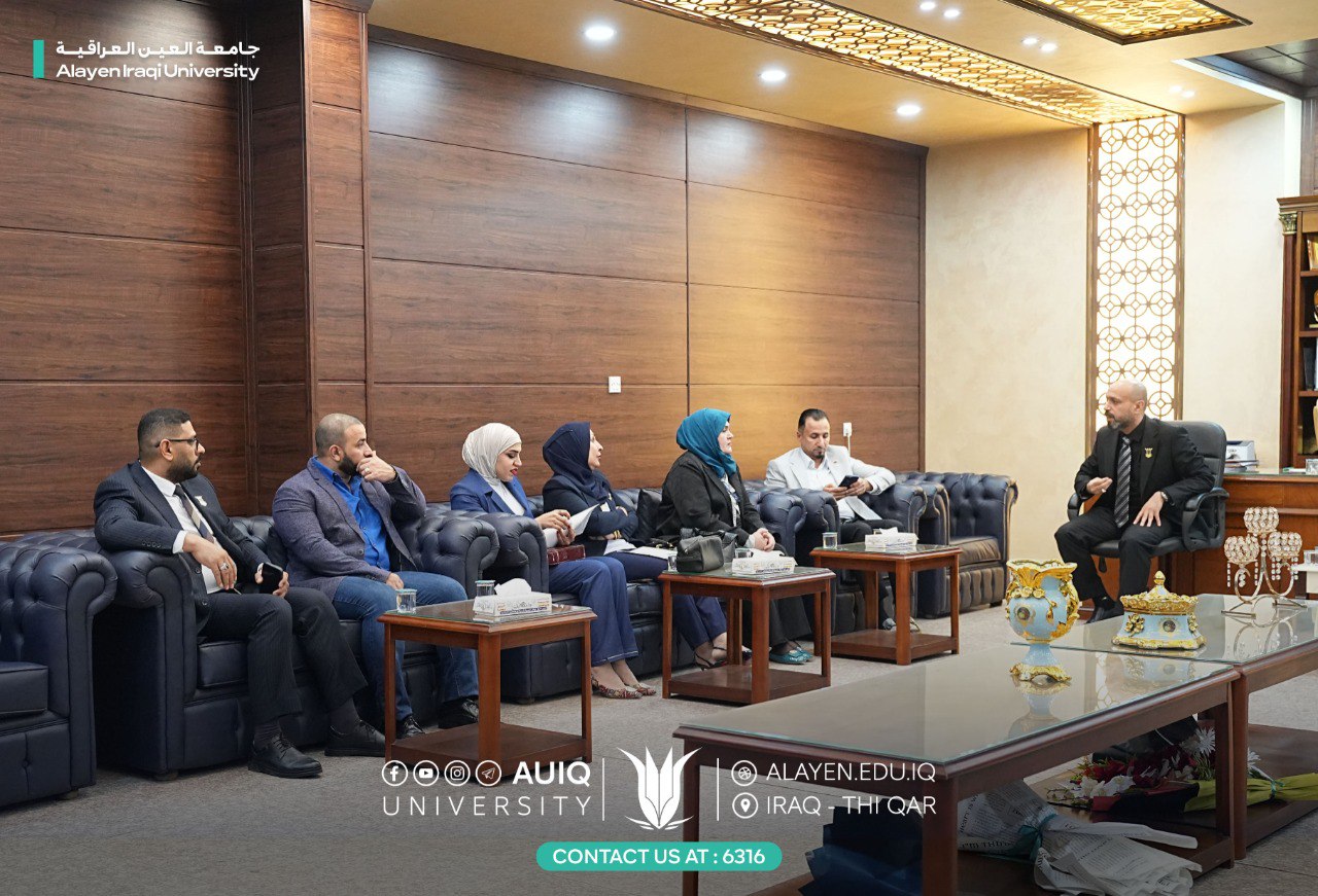 Al-Ayen Iraqi University received a committee from the Ministry of Higher Education and Scientific Research affiliated to the Scientific Supervision and Evaluation Authority of the Quality Assurance and University Performance Department, evaluated the university's adherence to standards of academic rigor, accreditation, and institutional and scientific performance, as well as its compliance with standards.