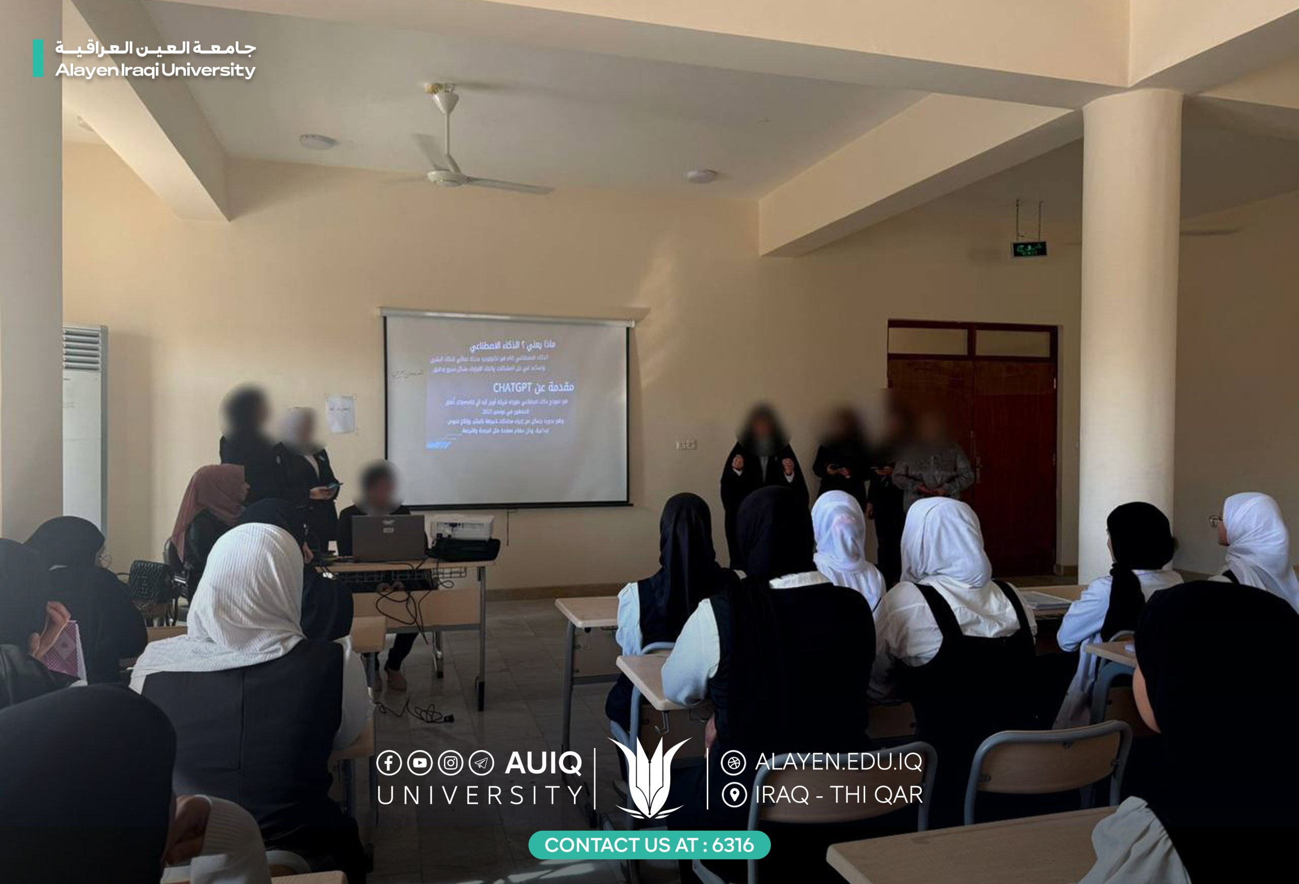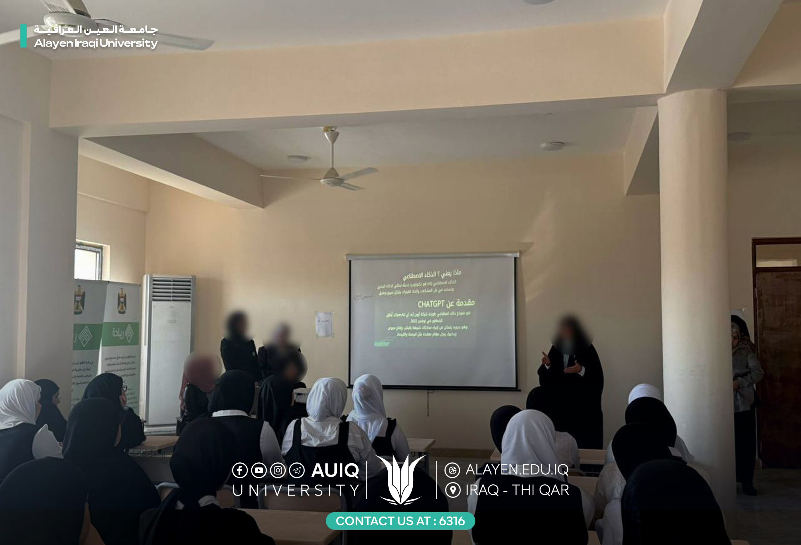Students from the Artificial Intelligence Engineering Department at Al-Ayen Iraqi University visited Al-Hawraa Vocational Preparatory School for Girls in Dhi Qar Province as part of an awareness initiative aimed at promoting digital literacy among school students and highlighting the role of modern technology in supporting the educational process.
