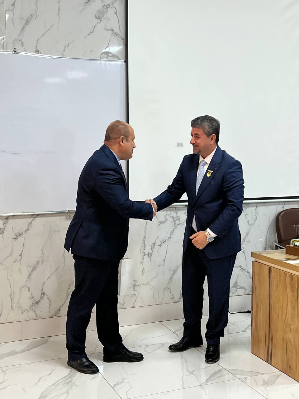 In conclusion, the Dean presented Dr. Adnan Hashim, with a plaque of appreciation for his continuous efforts during his secondment, wishing him continued success in his academic and professional career. Dr. Adnan expressed his thanks and gratitude for this initiative, emphasizing his pride in the time he spent at the college.