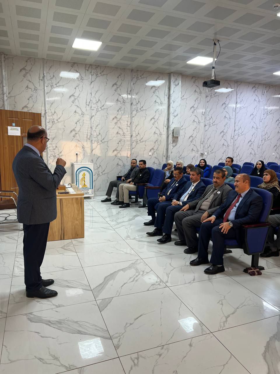 Several attendees also delivered speeches at the ceremony, expressing their gratitude to Dr. Adnan for his cooperation, professionalism, and discipline. They highlighted his prominent role in supporting and encouraging students and improving the academic work within the department.