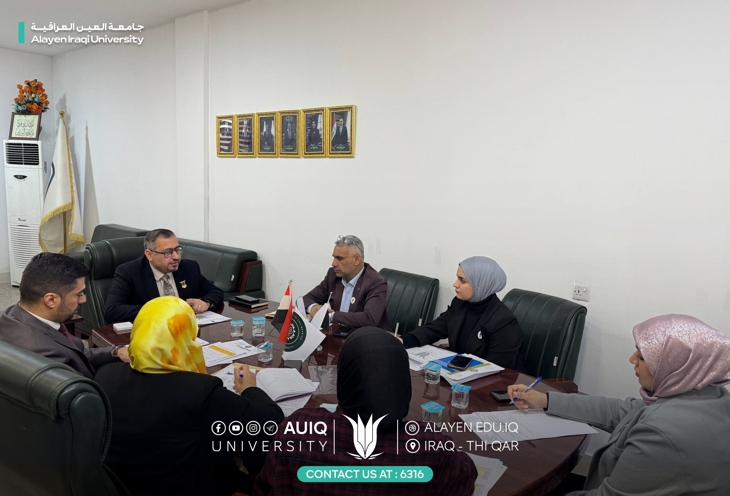 The College of Engineering at Al-Ayen Iraqi University held its council meeting, chaired by the Dean, Prof. Dr. Firas F. Kadhim, and attended by the heads of the academic departments and council members. The meeting coincided with the start of the academic year for first-year students, and the college extended its warmest congratulations and best wishes for a successful academic journey.