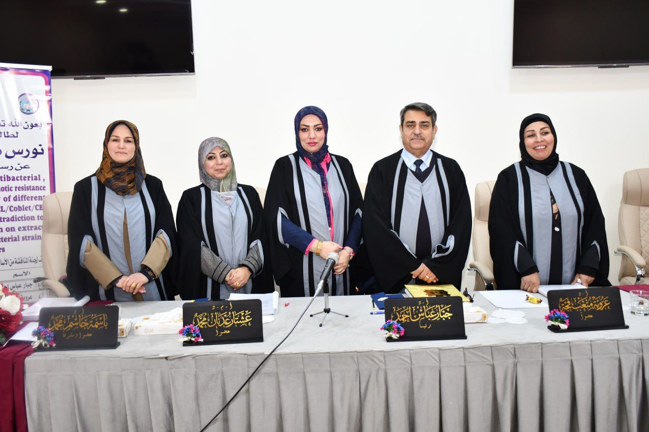 Prof. Dr. Jabbar Abbas Al-Saadi, Dean's Deputy for Acedemic Affairs at the College of Dentistry, chaired the master's thesis defense committee for student Nawras Hadi Abbas at the College of Veterinary, Al-Qadisiyah University. This reflects the distinguished academic presence of the College of Dentistry's faculty and their active participation in scientific and research activities.
