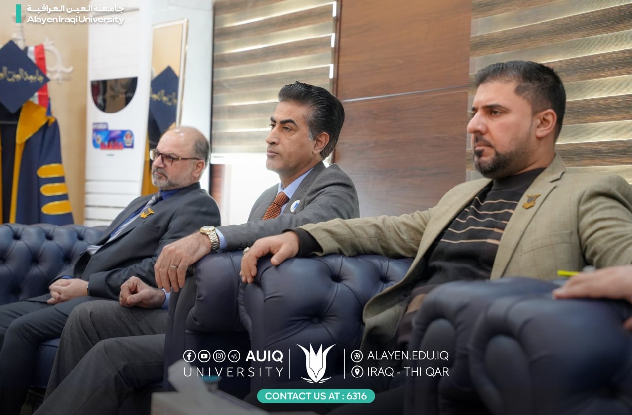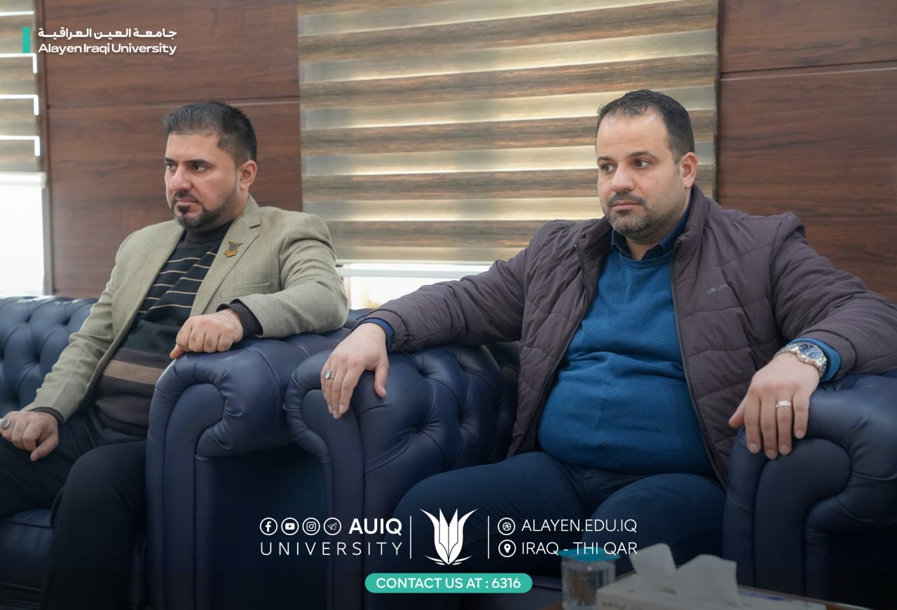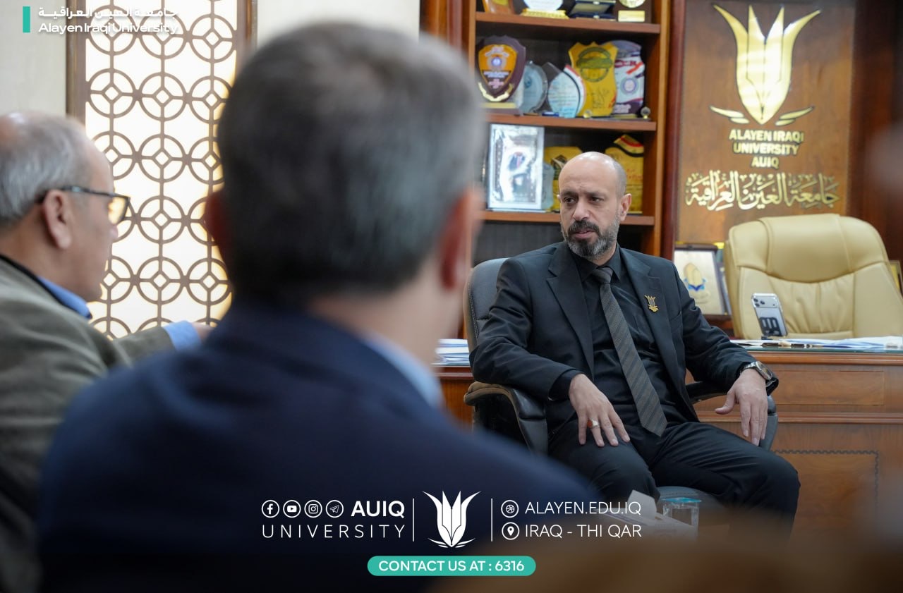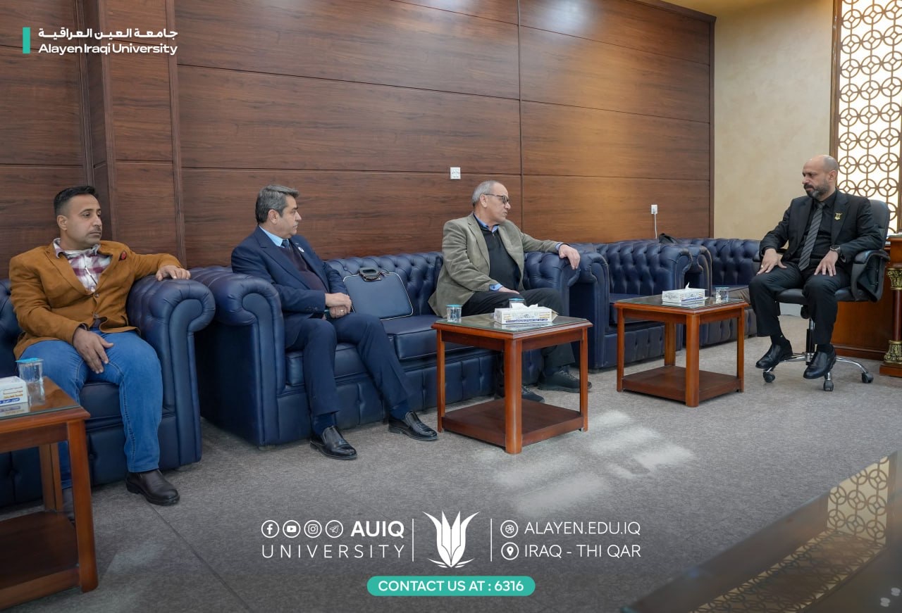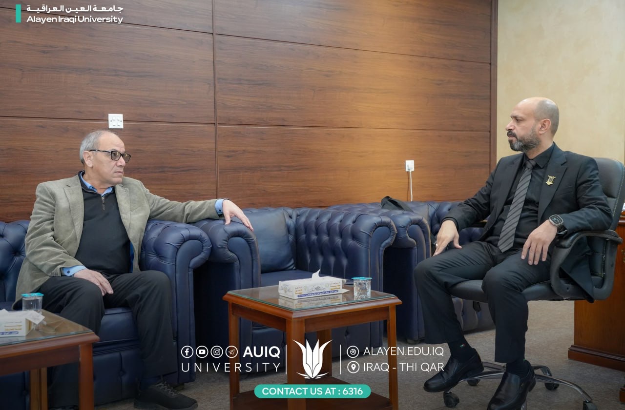 The Chancellor of Al-Ayen Iraqi University, Prof. Dr. Haider A. Marhoon, along with his Deputy for Academic Affairs, Prof. Dr. Naseer A. Hussein received Prof. Dr. Oraibi Ajaj from the Royal College of Medicine in Ireland. This visit aligns with the university's commitment to strengthening academic cooperation and fostering collaboration with international scientific institutions.