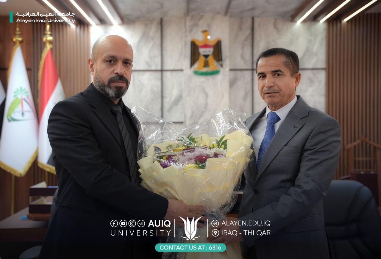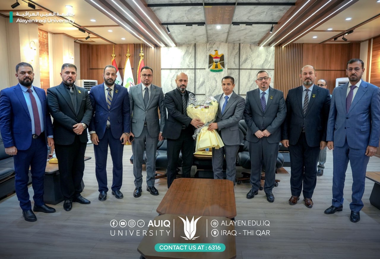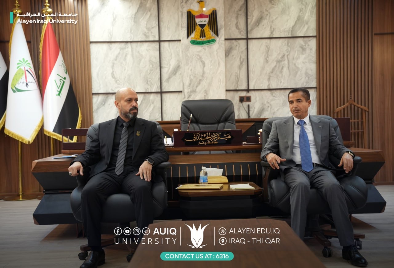 The Chancellor of Al-Ayen University, Prof. Dr. Haider A. Marhoon congratulated Mr. Haitham Al-Hamdani, on assuming the position of Governor of Dhi Qar during an official visit to the governorate headquarters.