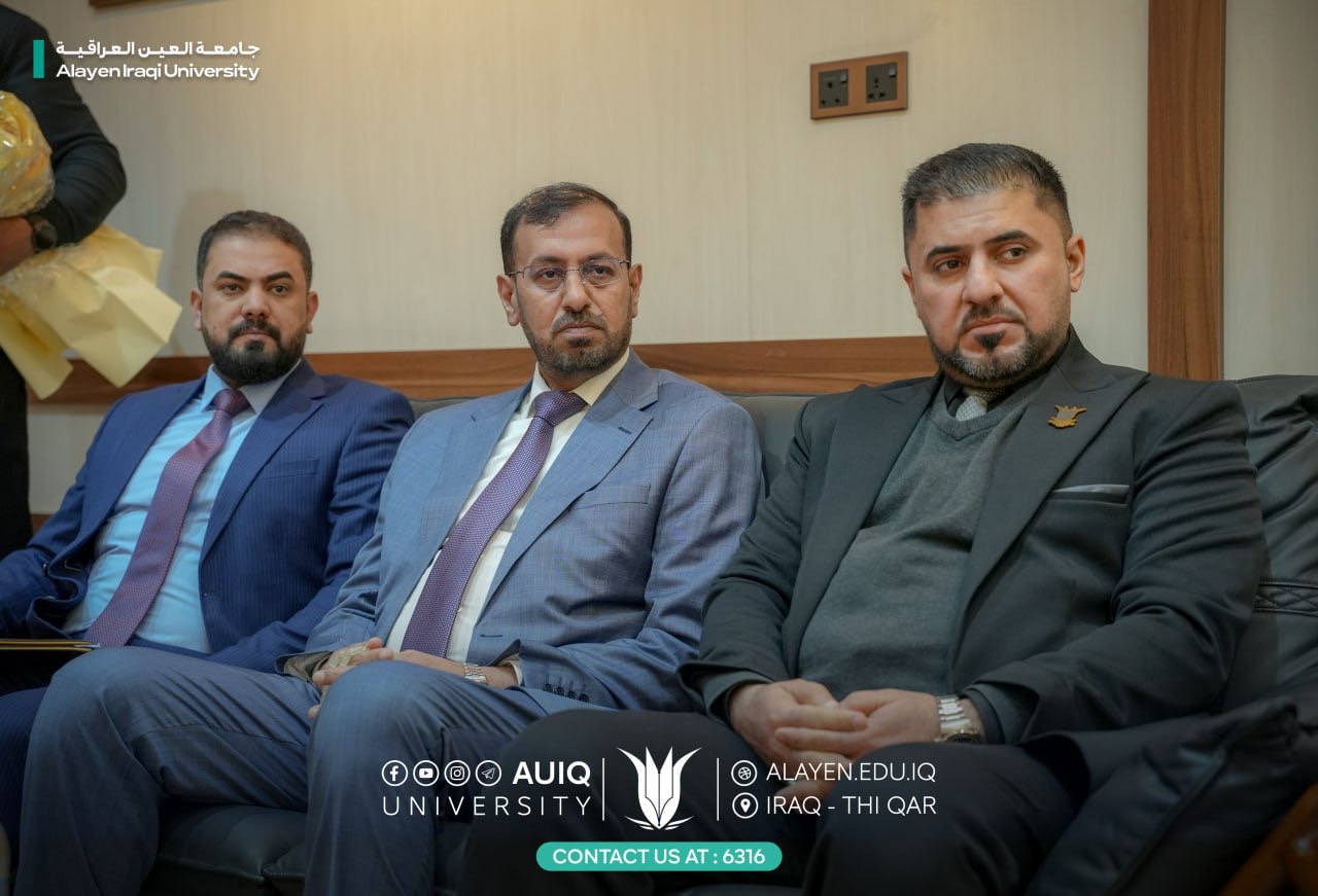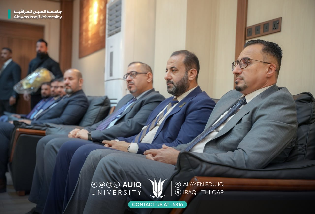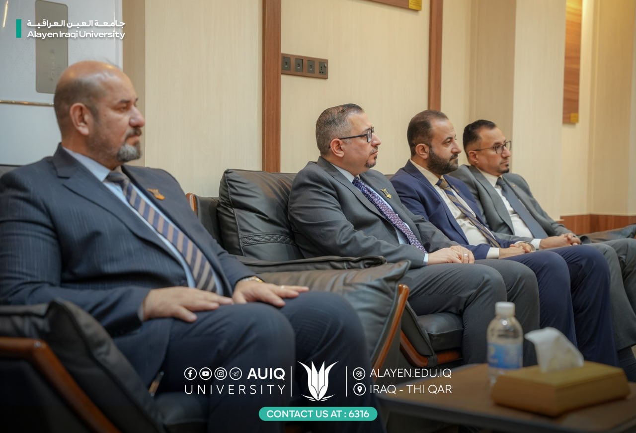 The delegation included the university chancellor's deputies for academic and administrative affairs, Prof. Dr. Naseer A. Hussein and Asst. Prof. Dr. Atheer Y. Awda, the Dean of the College of Engineering Prof. Dr. Firas F. Kadhim, the Dean of the College of Law Asst. Prof. Dr. Khalid K. Awda, and the Director of the Academic Affairs Department Dr. Maitham T. Al-Moussawi.