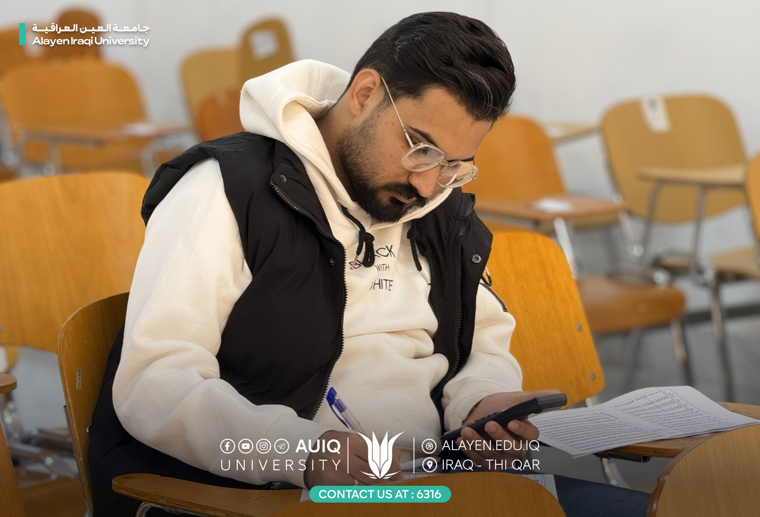 The College of Engineering at Al-Ayen Iraqi University continues to administer final exams for the first semester, according to the approved exam schedules, under the supervision of the Dean of the College of Engineering, Prof. Dr. Firas Faiq, and the monitoring of the examination committees.