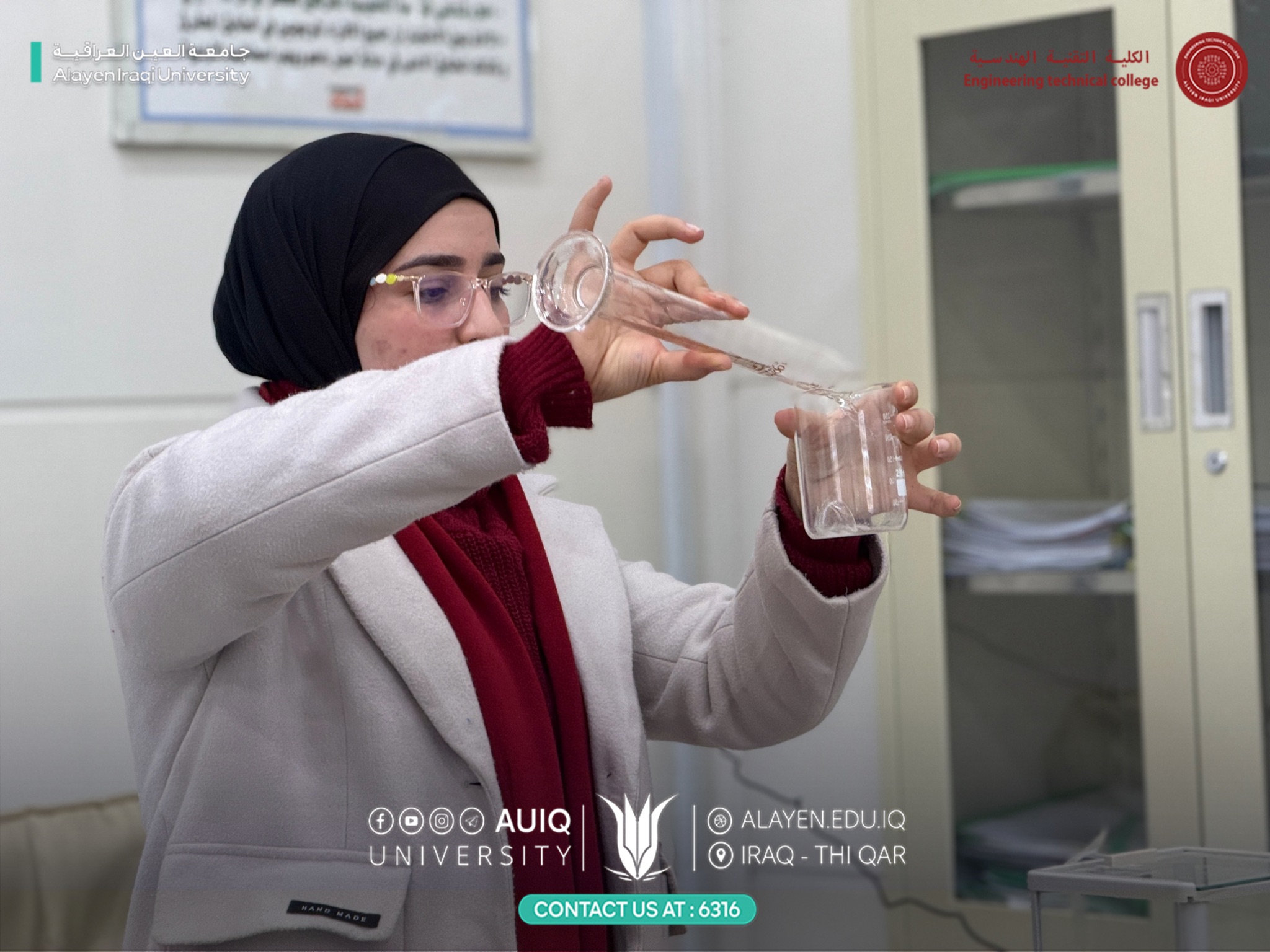 As part of the practical component of the Analytical Chemistry course for first-year students in the Fuel and Energy Technology Department, a laboratory experiment titled "Preparation of a Standard Solution" was conducted under the supervision of the course instructor, lecturer Ali Jaafar.