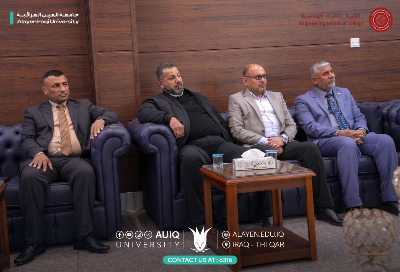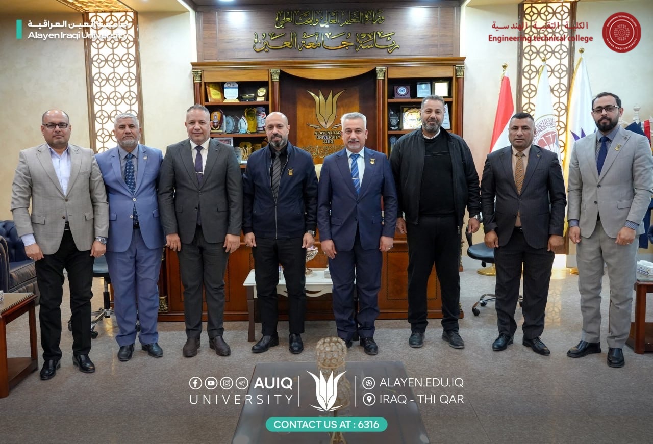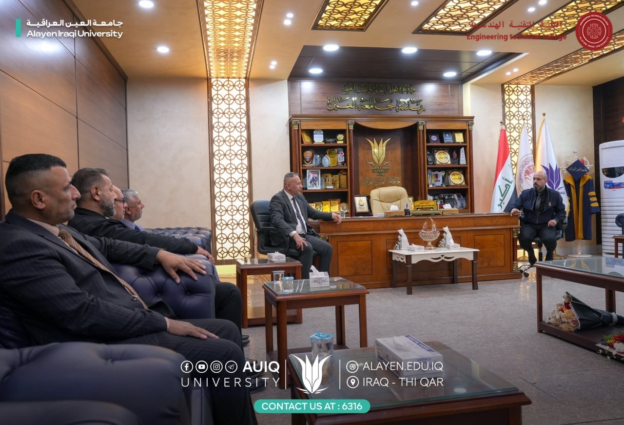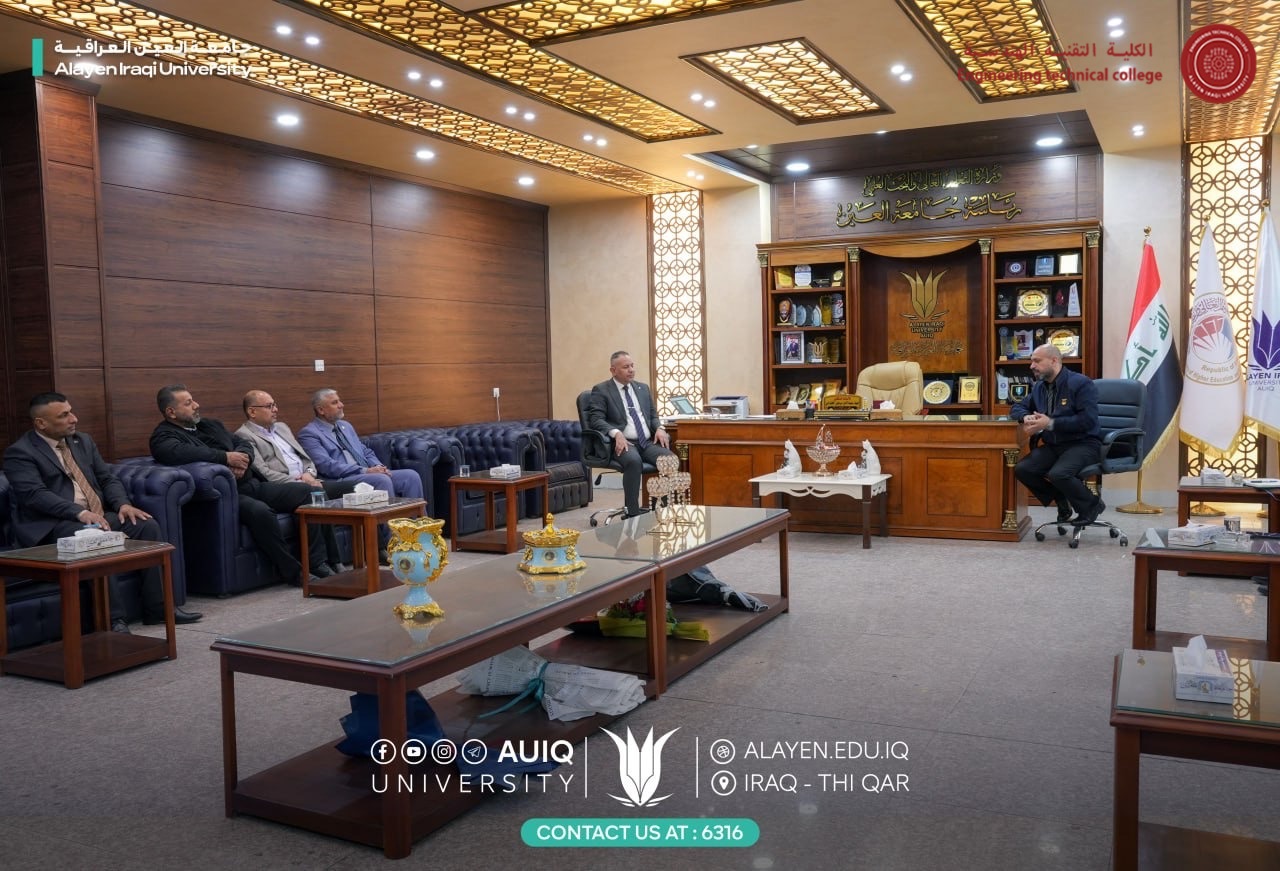 The Al-Ayen University's Chancellor, Prof. Dr. Haider A. Marhoon, along with His Deputy for Acedemic Affairs Asst. Prof. Dr. Raed N. Al-Obaidi, received Mr. Raad Jassim, Director of Vocational Education in Dhi Qar Province, accompanied by several Heamasters of Vocational Preparatory Schools in the Province.