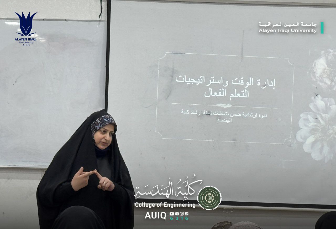 This seminar is part of a series of guidance and awareness activities organized by the College of Engineering at Al-Ayen Iraqi University, in support of first-year students, and in order to provide a stimulating educational environment and prepare students capable of keeping pace with the requirements of higher education.