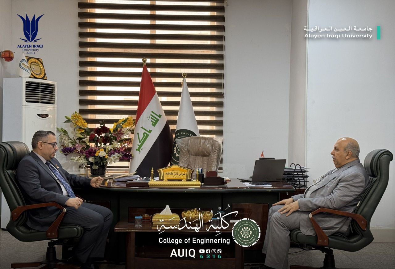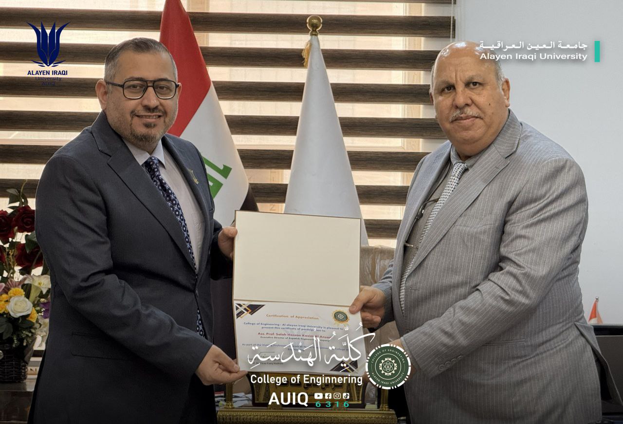 As part of the Visiting Professor Program and to enhance scientific and academic cooperation and foster collaboration with international universities, the College of Engineering at Al-Ayen Iraqi University hosted Dr. Salah Hassan Kadhim Al-Ansari, a visiting professor and representative from Carlos III University of Spain as part of the college's ongoing scientific and academic activities.