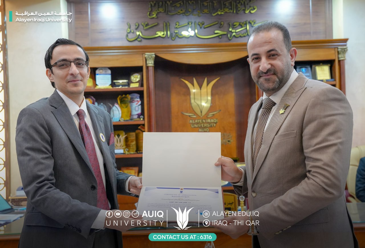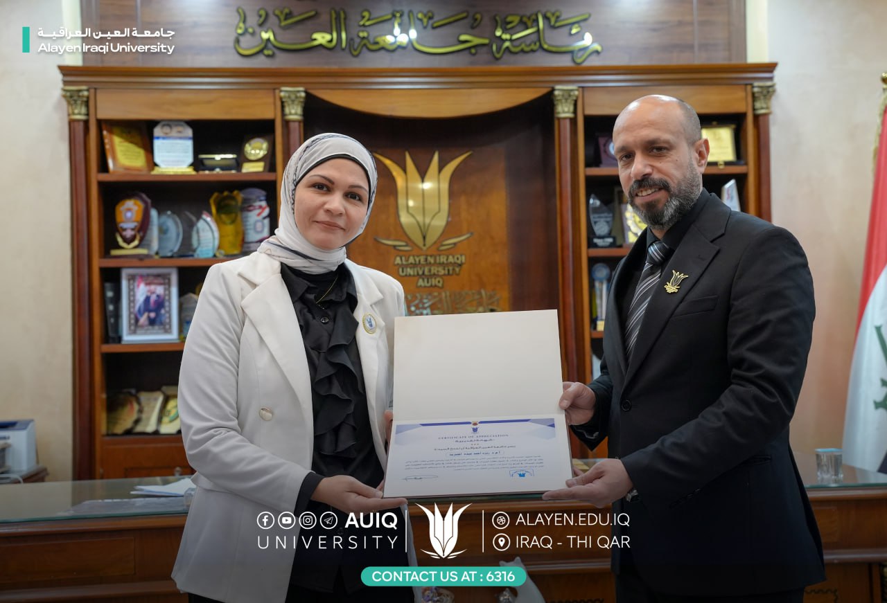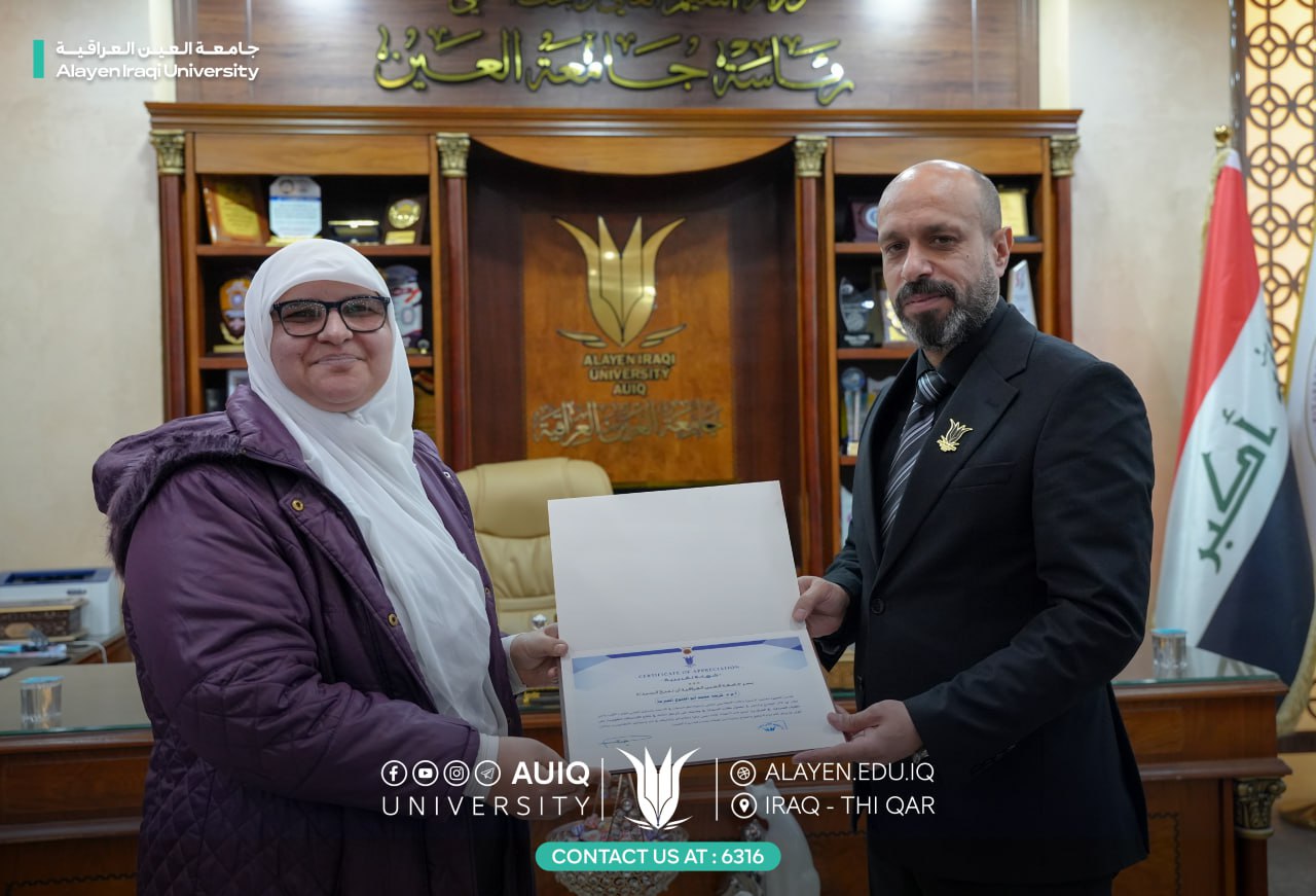 The College of Pharmacy at Al-Ayen University extends its warmest congratulations to the faculty members of the assessment courses on their recognition by the University Chancellor Prof. Dr. Haider A. Marhoon, having achieved third place at the national level in the unified national examinations.