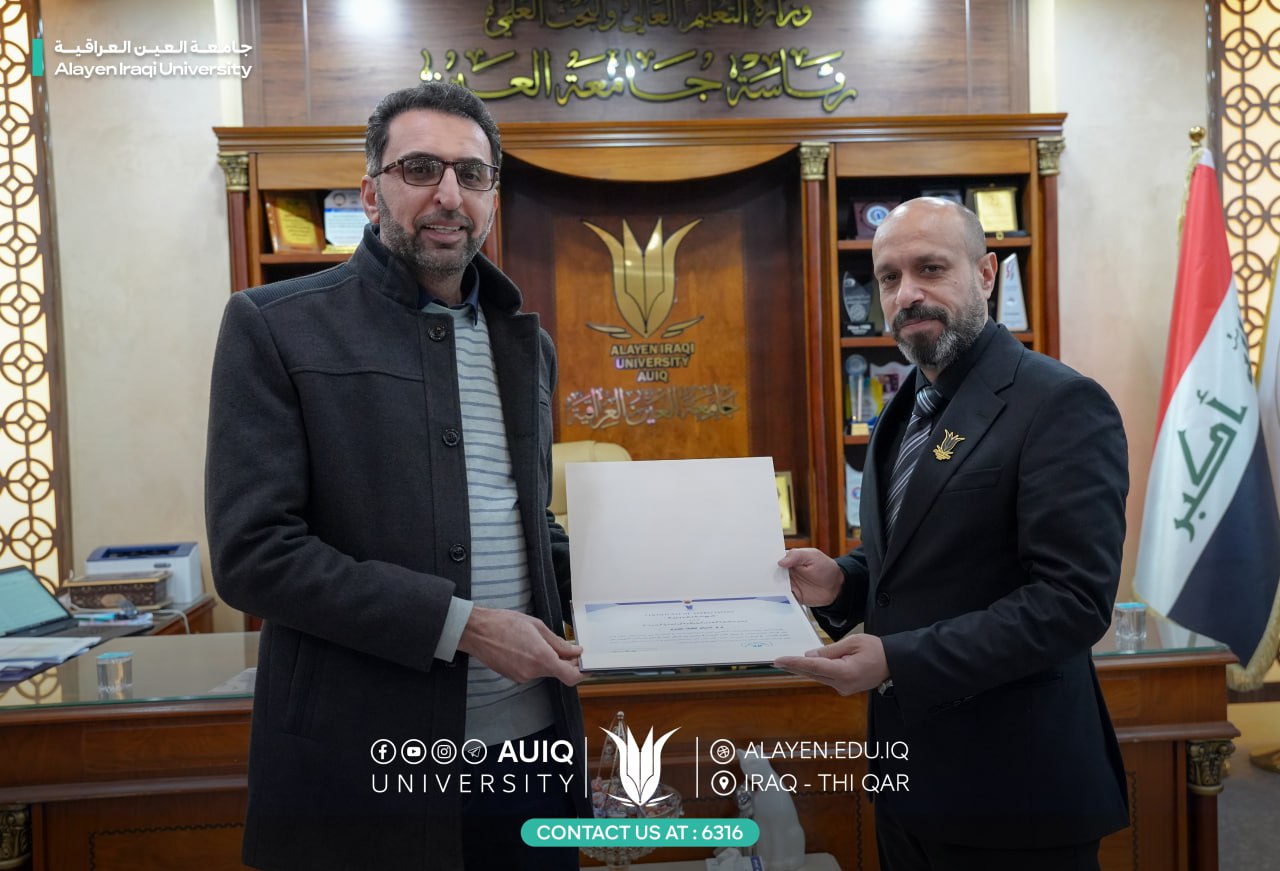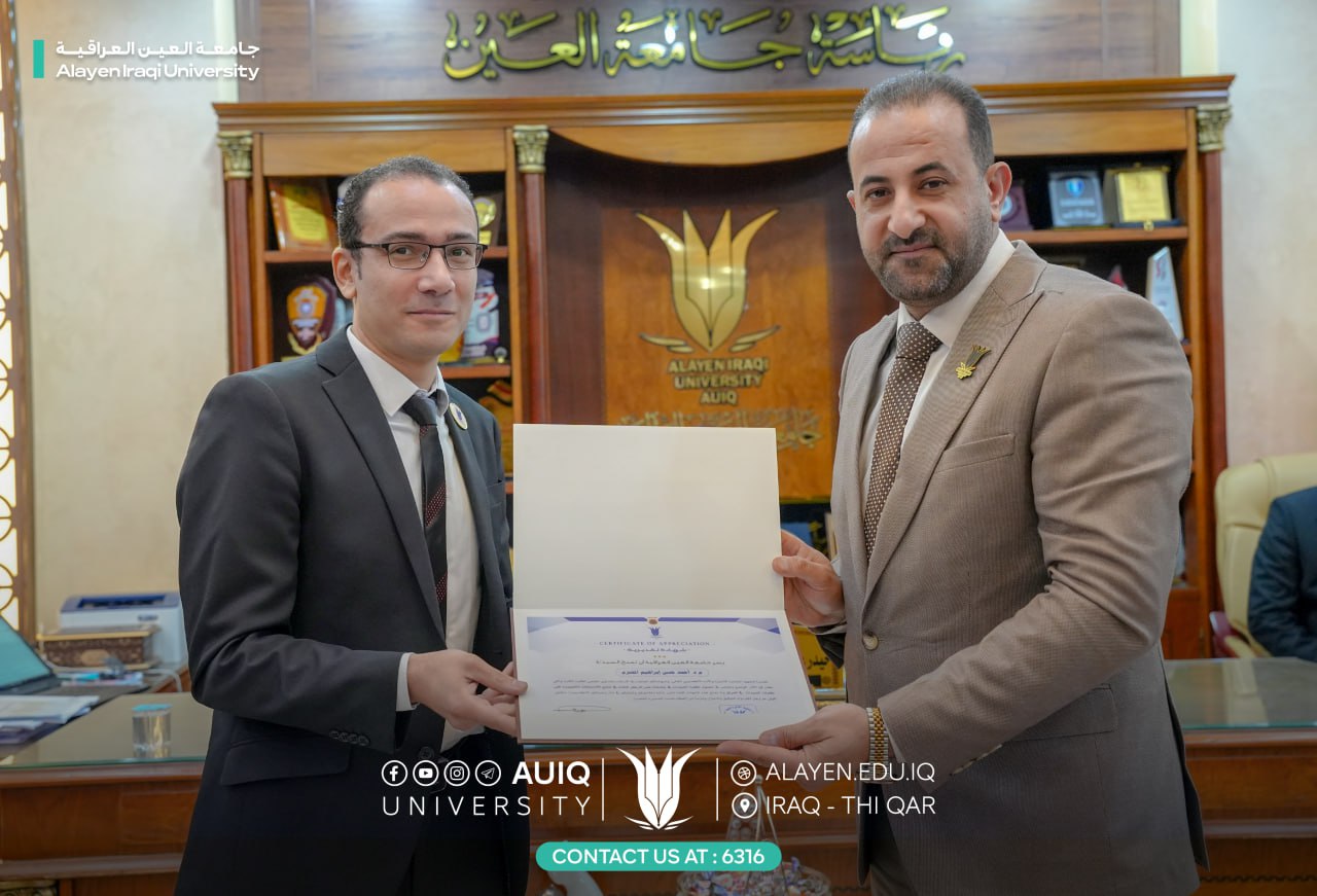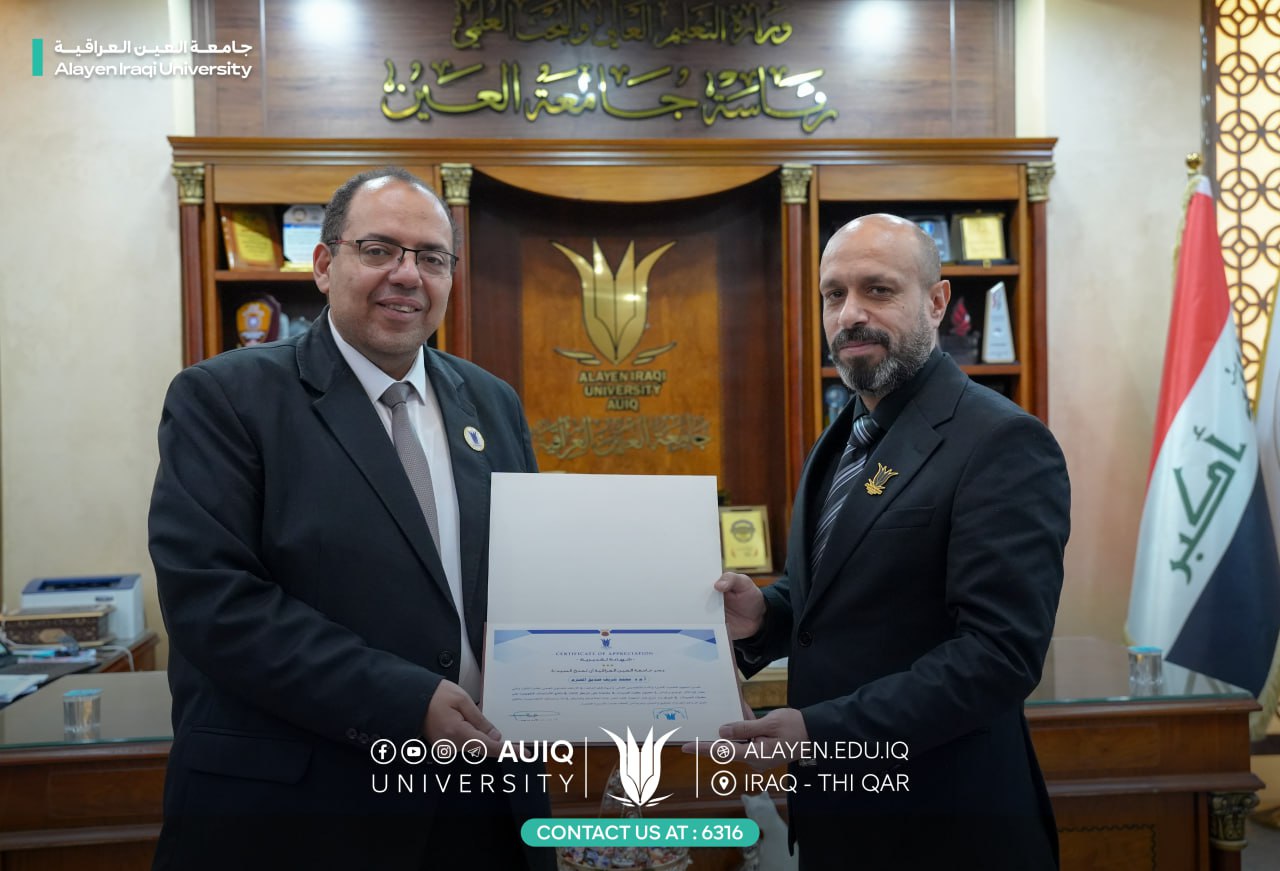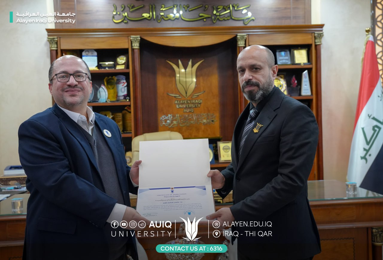 The College of Pharmacy at Al-Ayen University extends its warmest congratulations to the faculty members of the assessment courses on their recognition by the University Chancellor Prof. Dr. Haider A. Marhoon, having achieved third place at the national level in the unified national examinations.