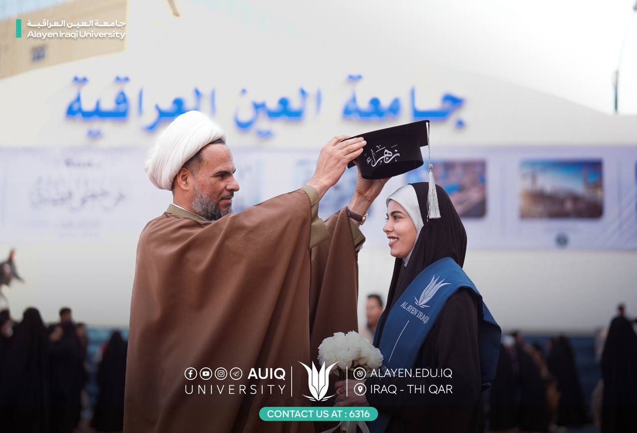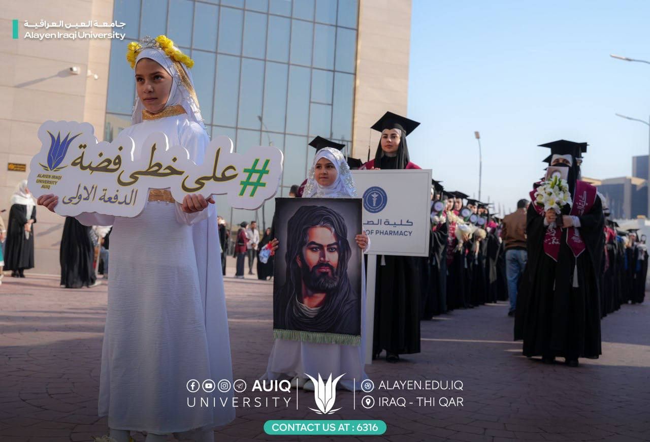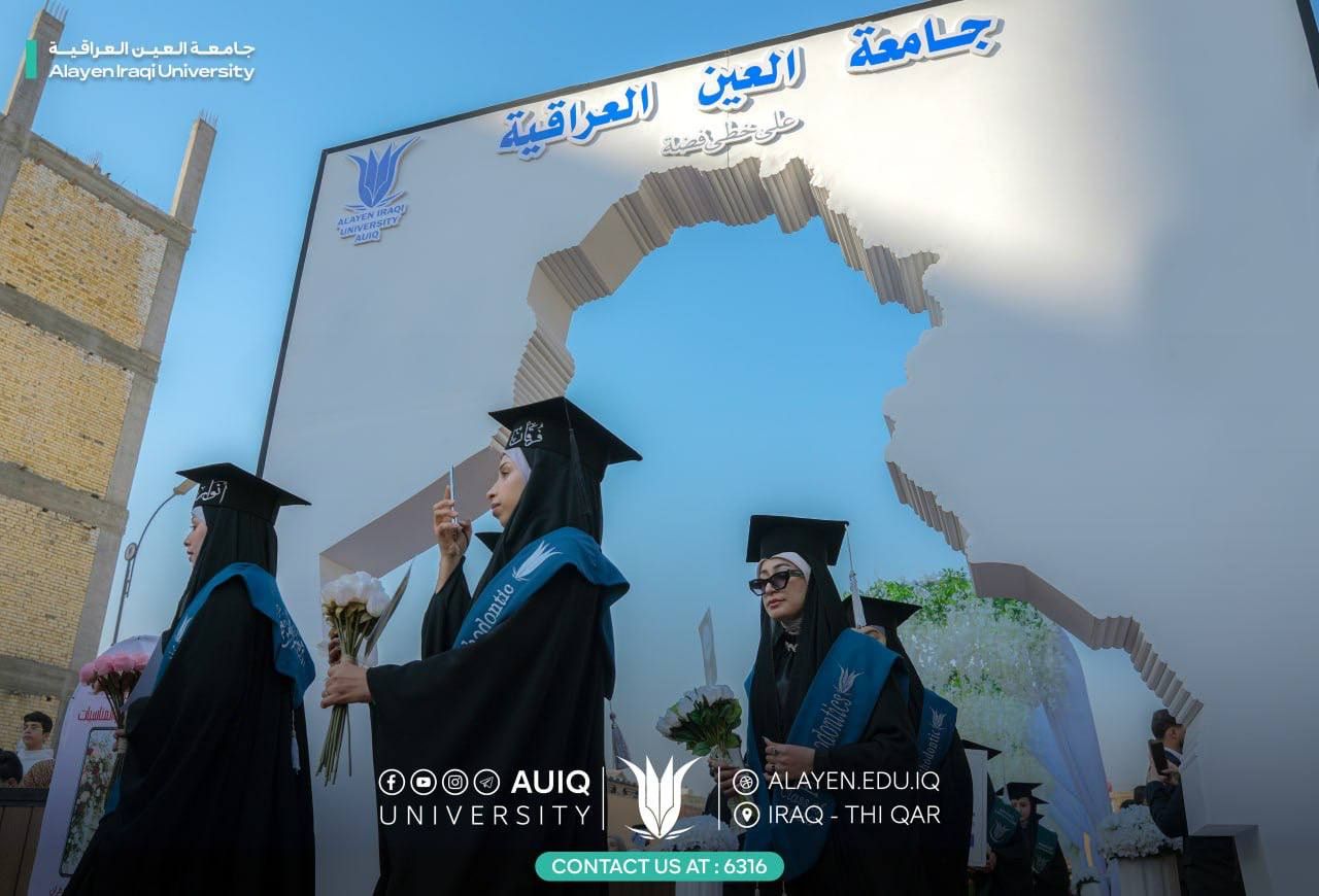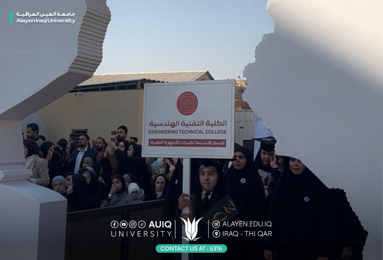 Students from the College of Engineering Technology at Al-Ayen Iraqi University actively participated in the central ceremony, "Following in Fidha's Footsteps," held to honor female graduates from Iraqi universities who wear the veil (abaya). The event was attended by a significant number of academics and students, adding a cultural and social dimension to the occasion.