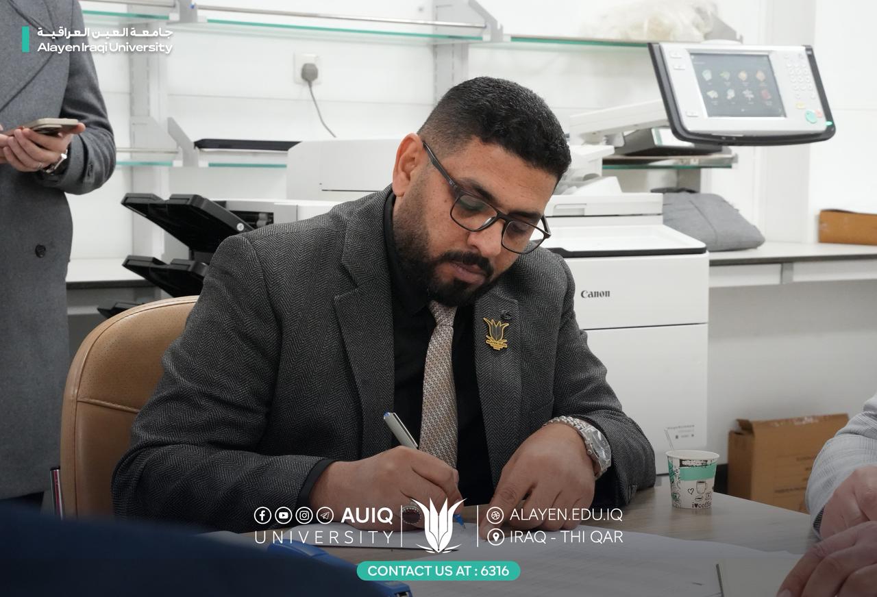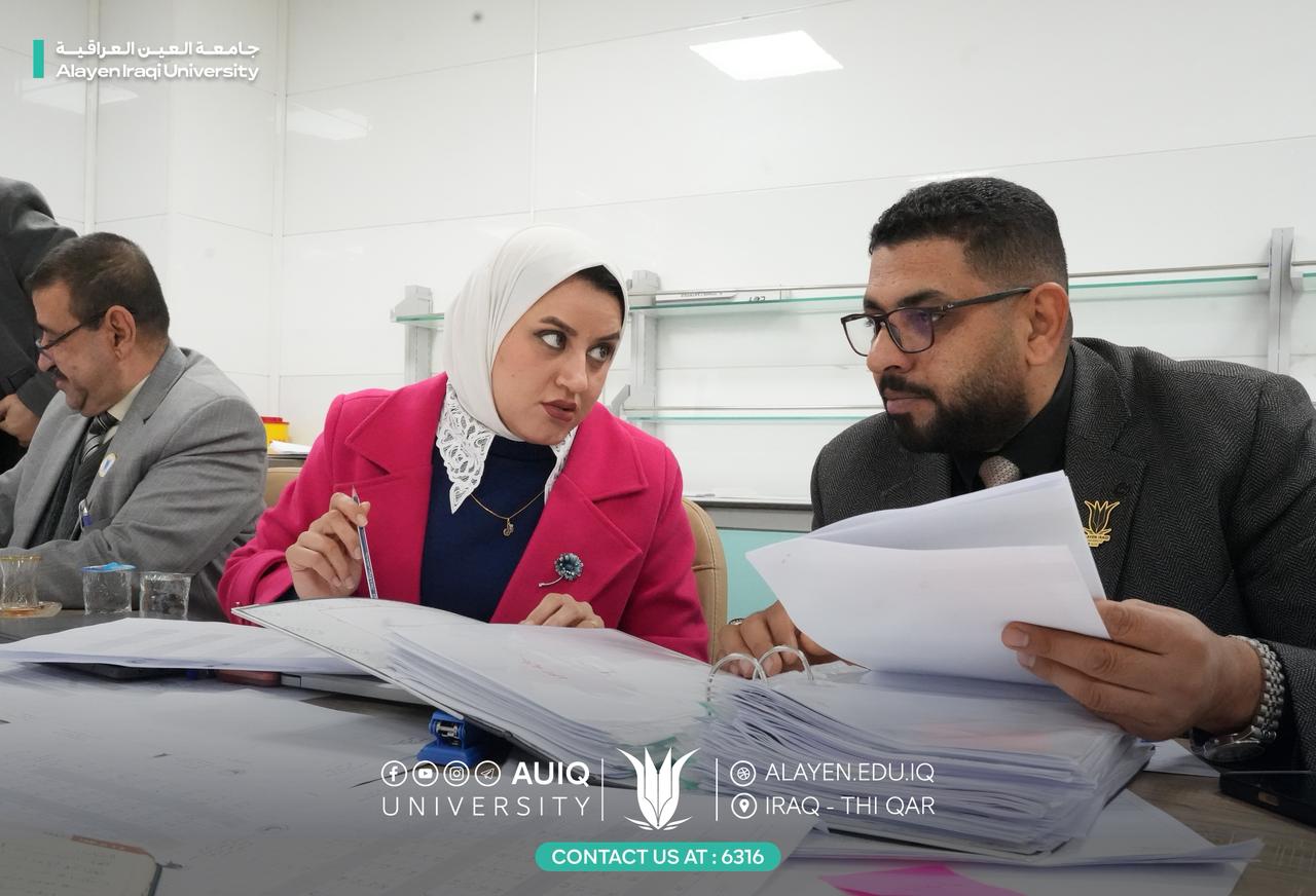 In conclusion, he called for continued efforts and the maintenance of this high level of organization and institutional work. He wished everyone continued success and affirmed the University Presidency's full support for all initiatives aimed at advancing the scientific and academic standing of Al-Ayen Iraqi University.