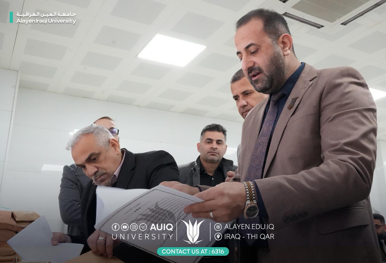 The Deputy Chancellor of Al-Ayen University for Acedemic Affairs, Prof. Dr. Naseer Ali Hussein visited the examination committee at the College of Medicine as part of his ongoing monitoring of the examination process and to review the work procedures and organizational mechanisms in place at the college.