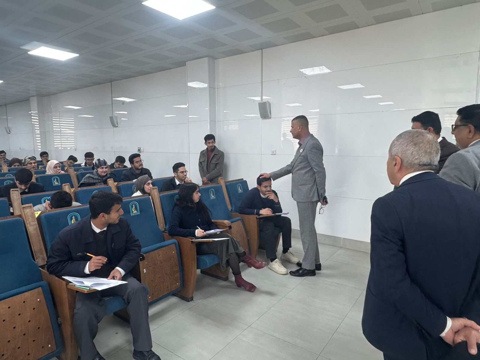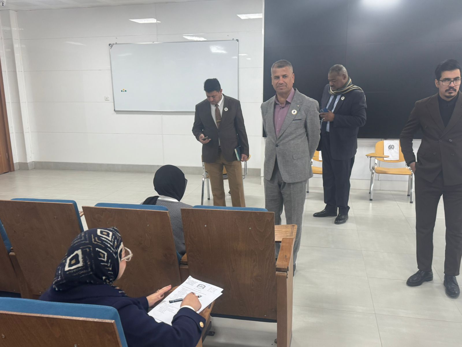 During his tour, Prof. Dr. Al-Khafaji reviewed the nature of the exam questions, assessing their comprehensiveness, balance, and coverage of the prescribed curriculum, in accordance with the educational objectives of the courses. He emphasized the college administration's commitment to ensuring fair examinations and providing a conducive environment for students to take their exams with ease and confidence.