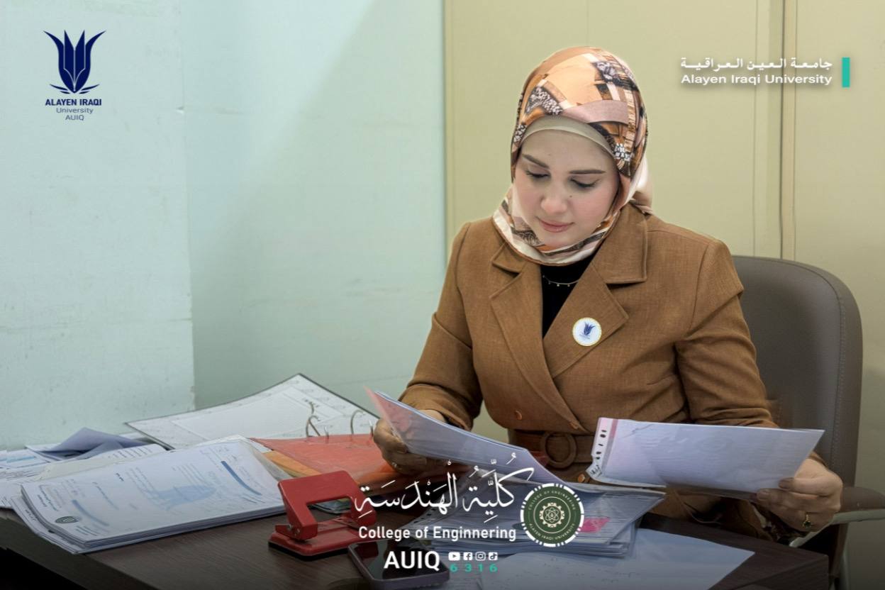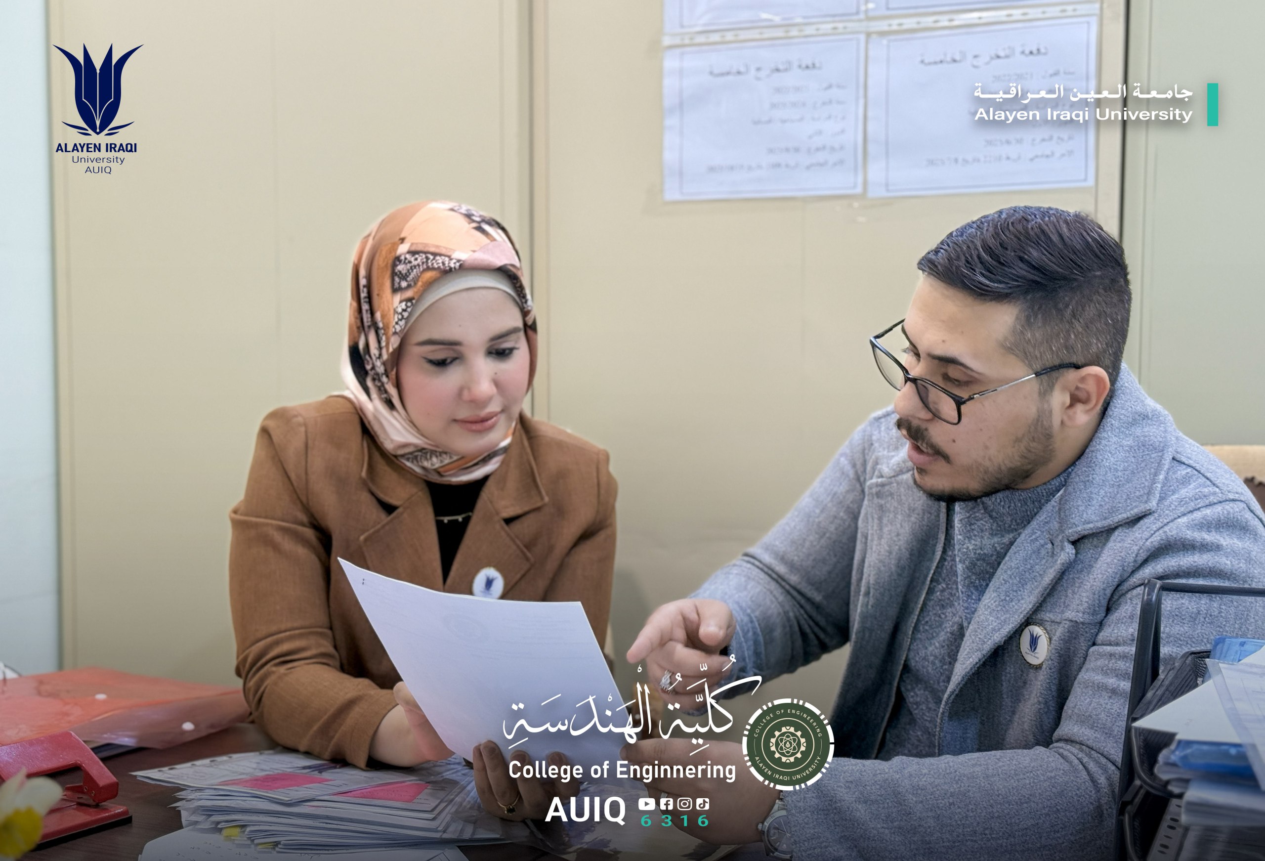 A delegation from the Central Committee of the Student Affairs and Registration Department at Al-Ayen Iraqi University, comprised of Asst. Prof. Dr. Mu'taz Salman Hassan, Lecturer Farah Wasfi Tahir, and Lecturer Dua'a Ibrahim Hassan, visited the Student Affairs and Registration Branch at the College of Engineering as part of the university's efforts to enhance administrative oversight and ensure the quality of services provided to students.