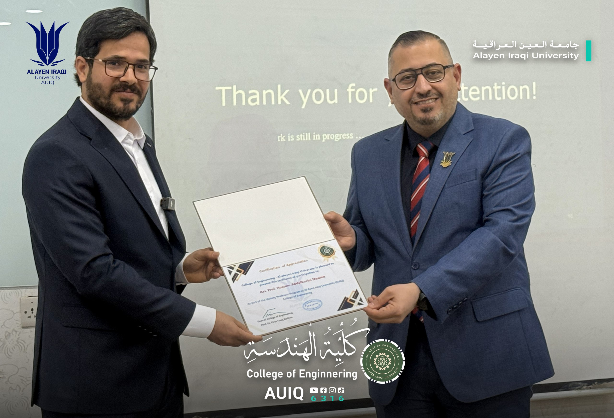 This event comes within the framework of the College of Engineering at Al-Ayen Iraqi University's commitment to supporting high-quality scientific activities and promoting academic openness and scientific cooperation, in line with the college's vision of advancing the educational and research process and keeping pace with global scientific developments.