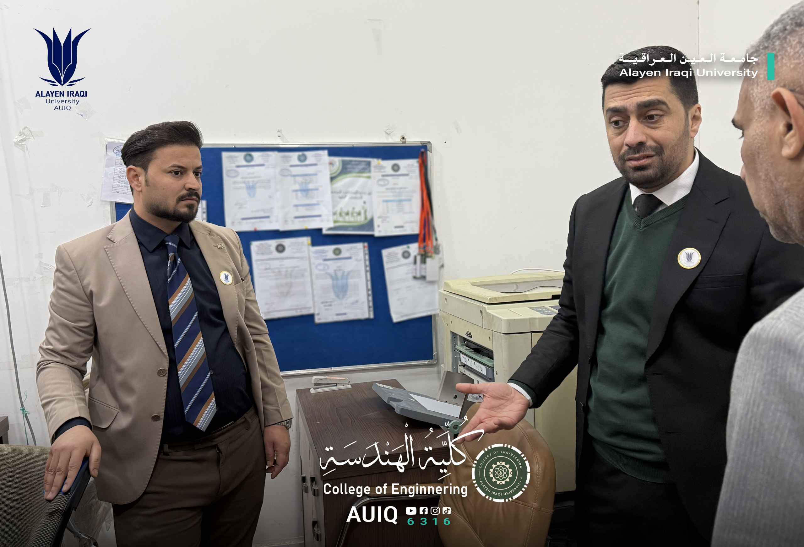 The College of Engineering at Al-Ayen Iraqi University continues its work with the examination committees tasked with finalizing the results of the first semester exams. This is being accomplished through intensive efforts by the specialized committees, under the direct supervision of the Deputy Dean for Academic Affairs, Dr. Sarmad Kadhim Dhiab.