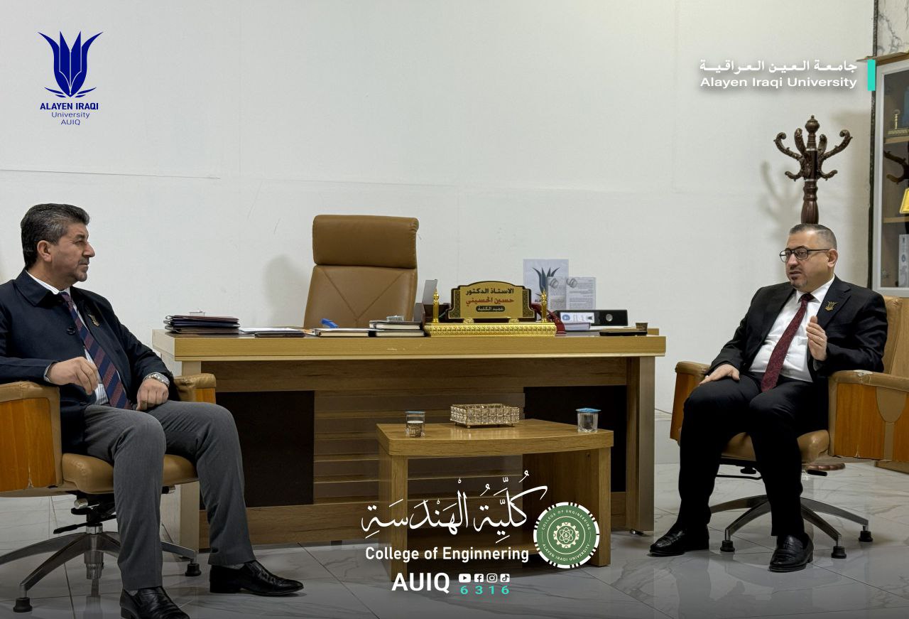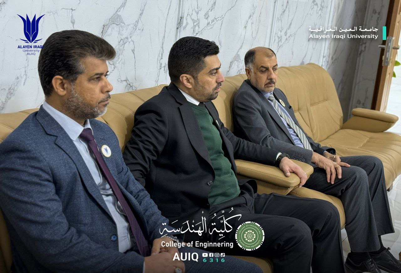 As part of strengthening academic and institutional cooperation between the colleges of Al-Ayen Iraqi University, the College of Engineering Council paid an official visit to the College of Education. The visit was led by the Dean of the College of Engineering Prof. Dr. Firas F. Kadhim, and attended by the Dean of the College of Education Prof. Dr. Hussein Al-Husseini, along with several council members and faculty members from both colleges.
