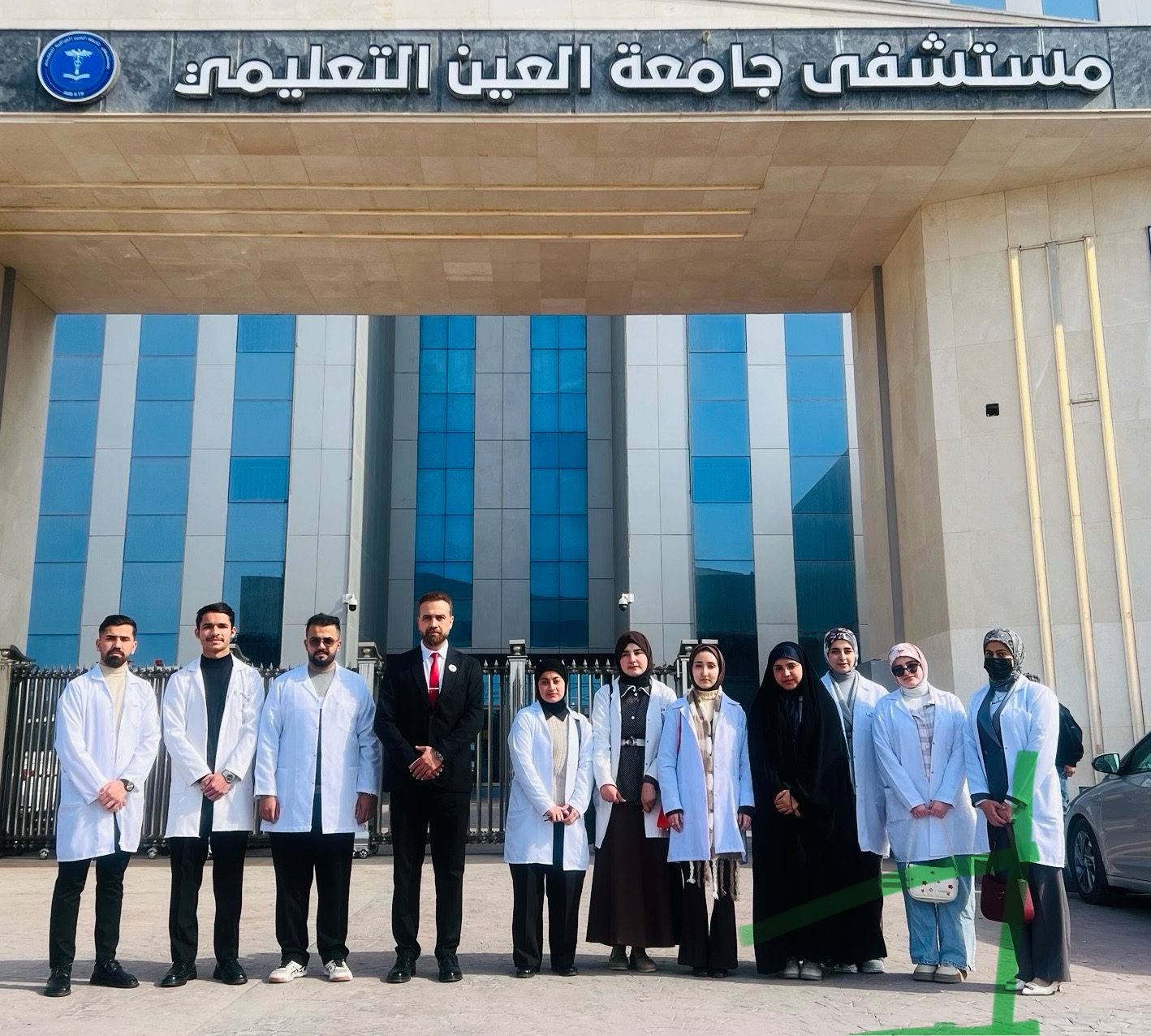 The Department of Radiological Technology at the College of Health and Medical Technologies, Al-Ayen Iraqi University, organized a scientific visit to Al-Ayen Teaching Hospital. The visit, which included several students and faculty members, was part of the department's ongoing efforts to enhance practical learning and bridge the gap between theoretical concepts and real-world applications.