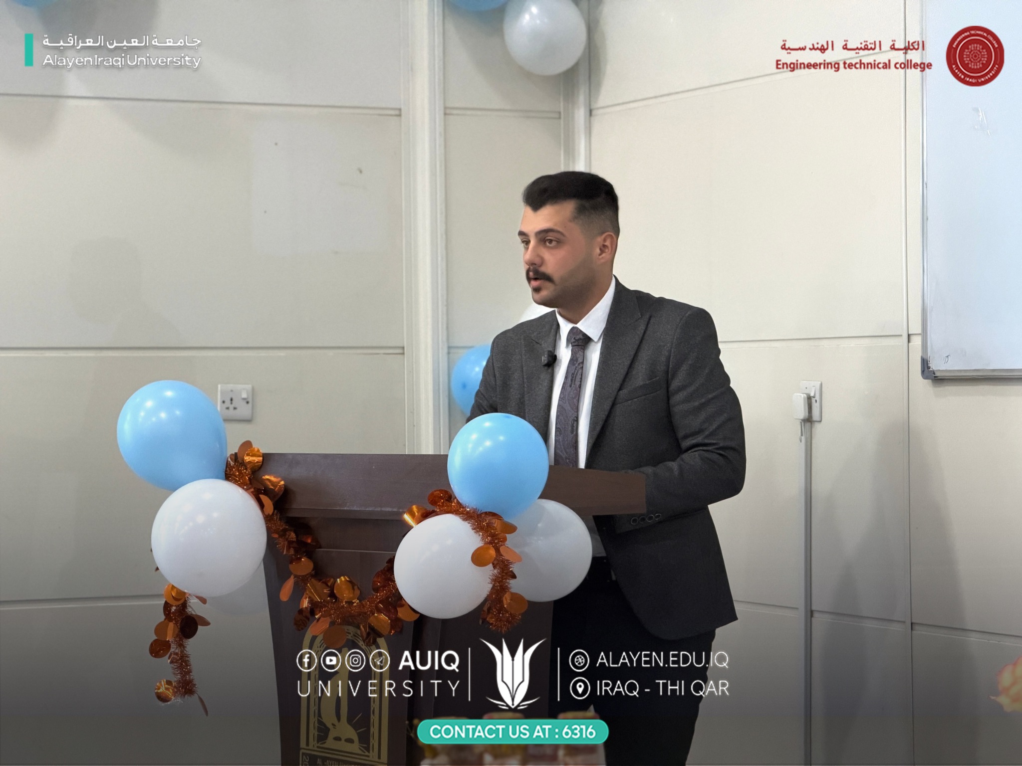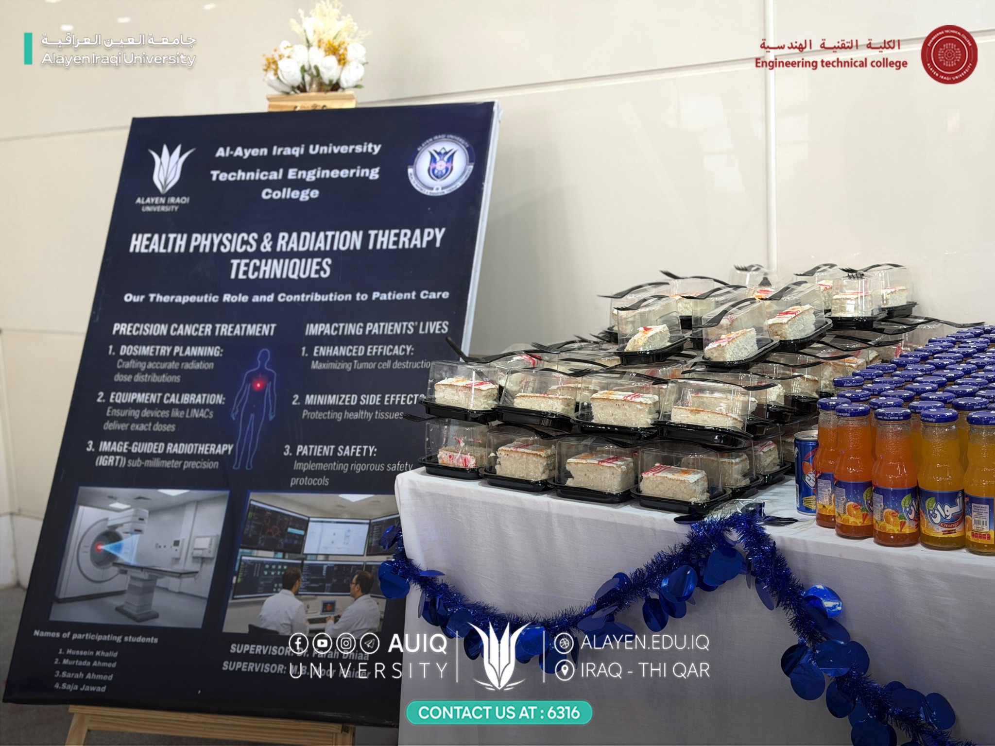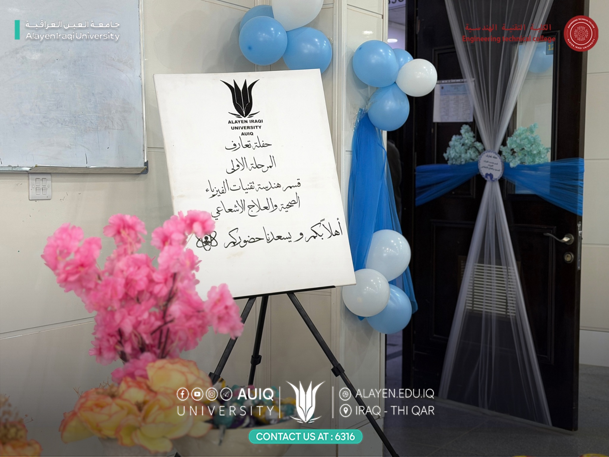 The Department of Health Physics Engineering and Radiation Therapy held an acquaintance ceremony for first-year students, attended by the Deputy Dean for Acedemic Affairs Asst. Prof. Dr. Raed Nasr Al-Obaidi, the Head of the Department Dr. Farah Redha Al-Bayati, heads of departments at the College of Engineering Technology, and faculty members.