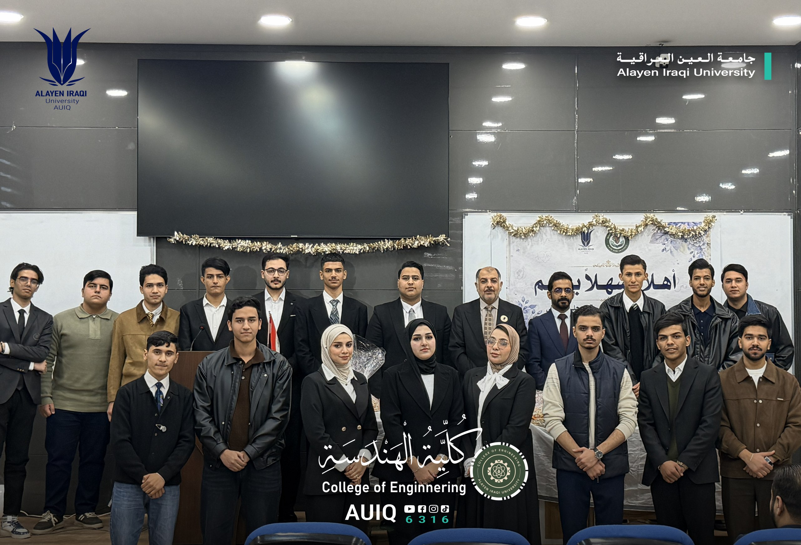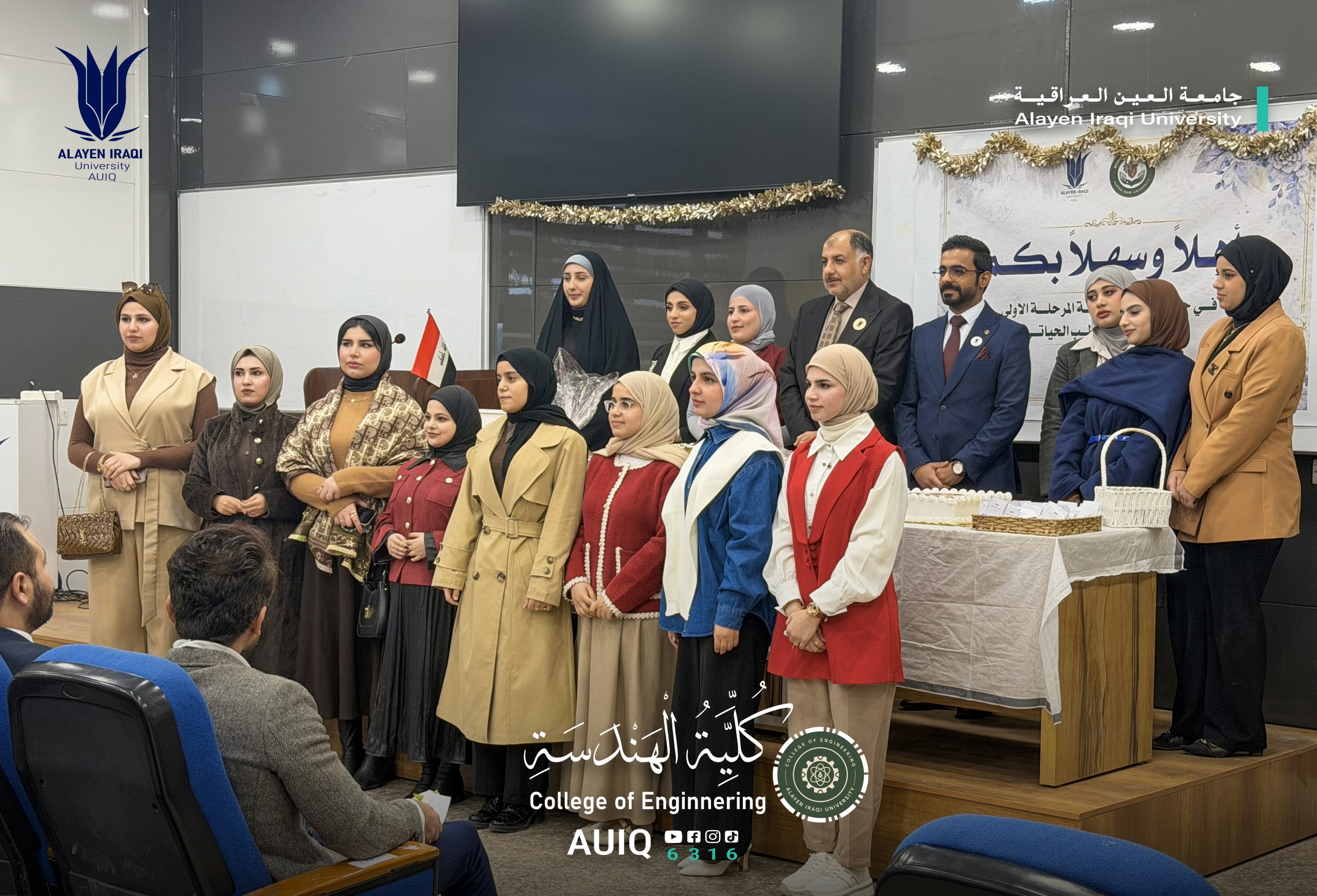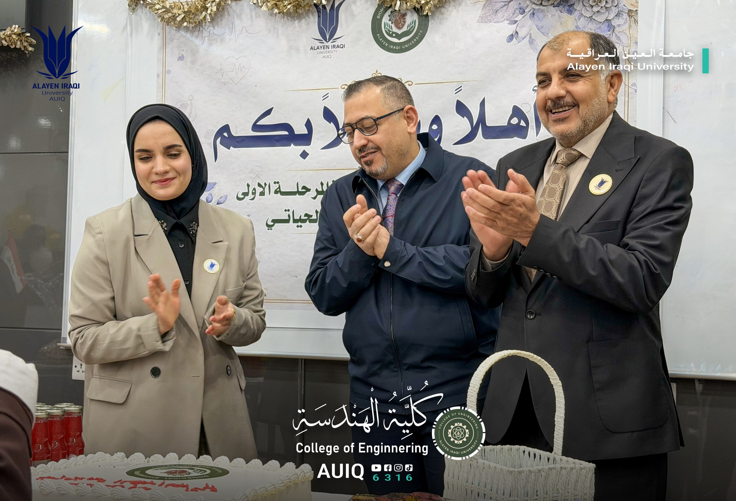 The Biomedical Engineering Department at the College of Engineering, Al-Ayen Iraqi University, held an Acquaintance Ceremony for first-year students, attended by the Deanship of the College and several faculty members.
