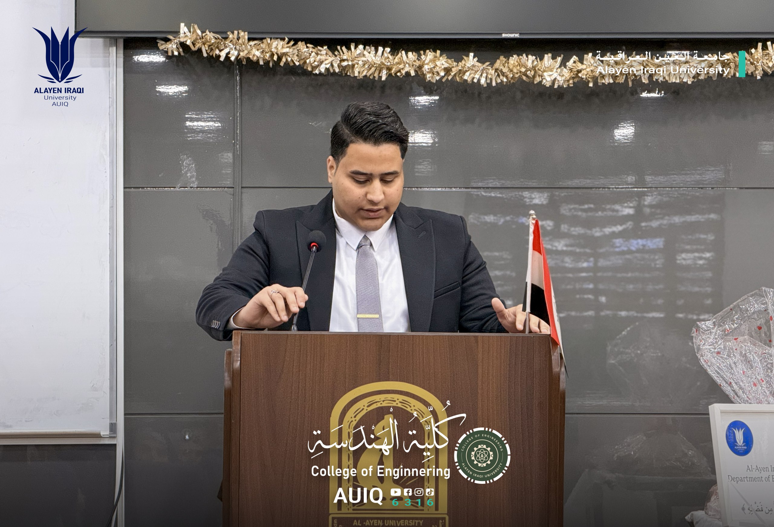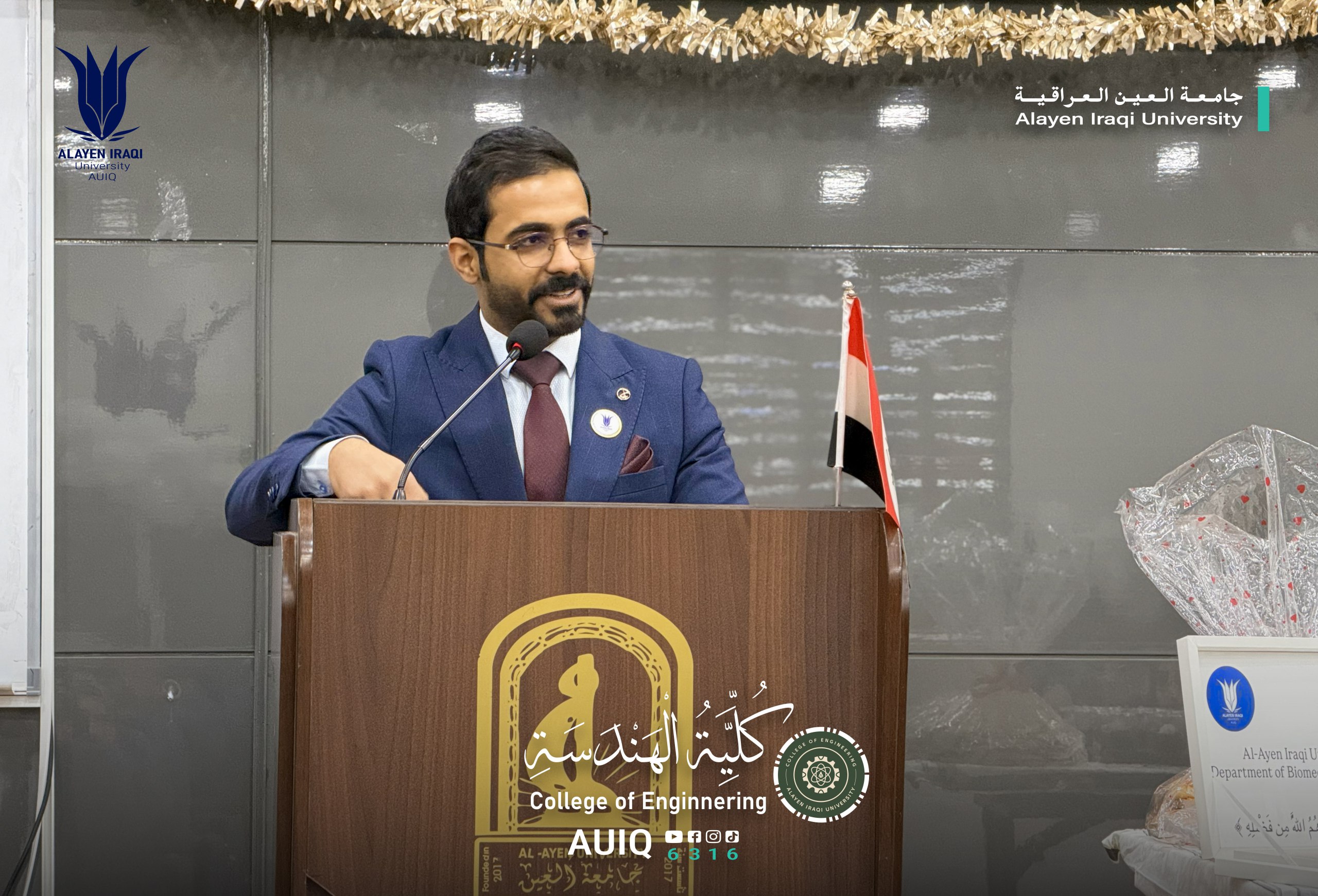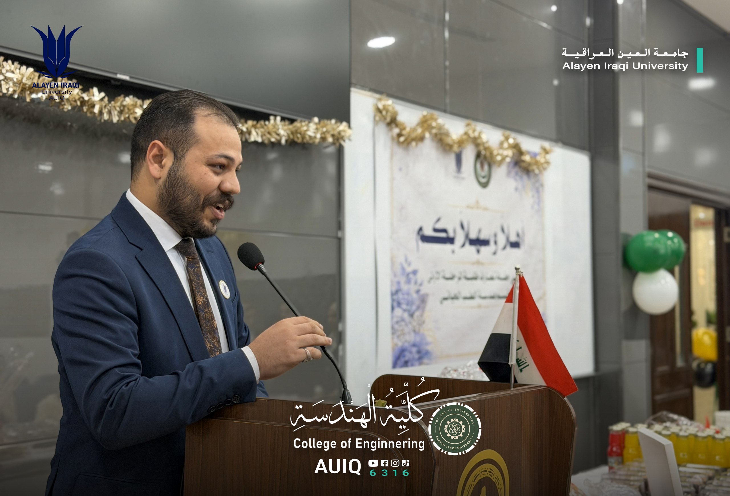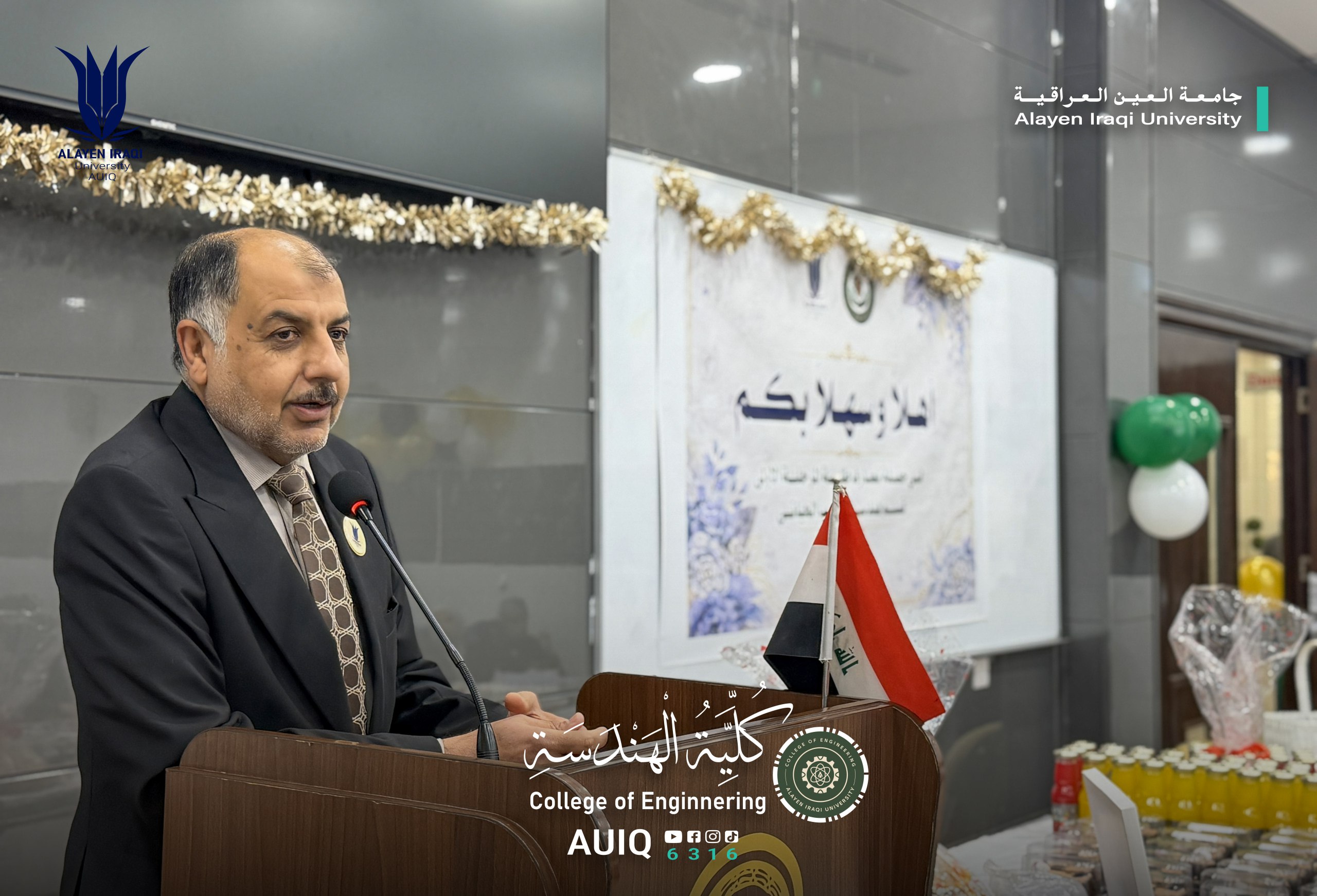 The Biomedical Engineering Department at the College of Engineering, Al-Ayen Iraqi University, held an Acquaintance Ceremony for first-year students, attended by the Deanship of the College and several faculty members.