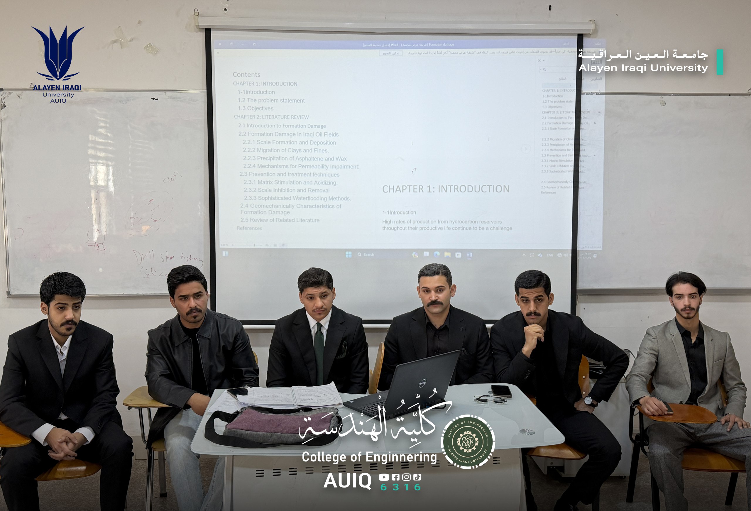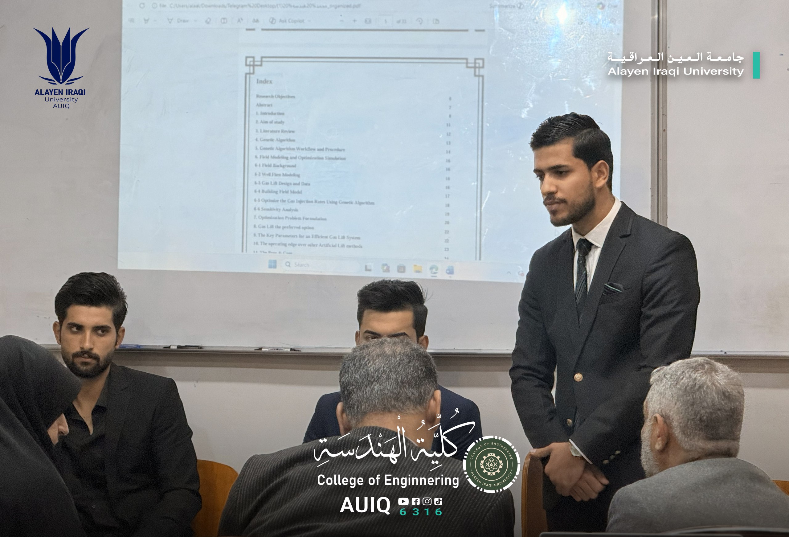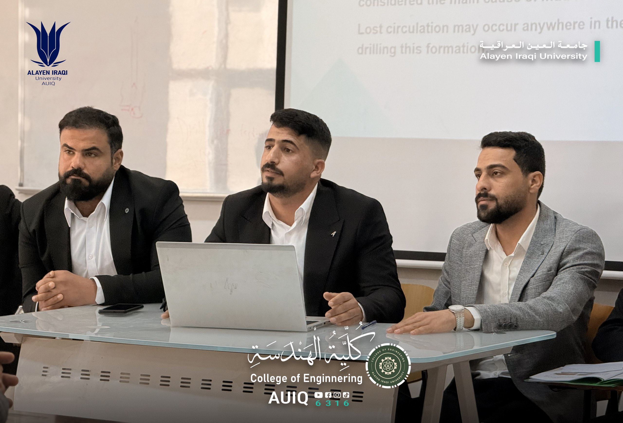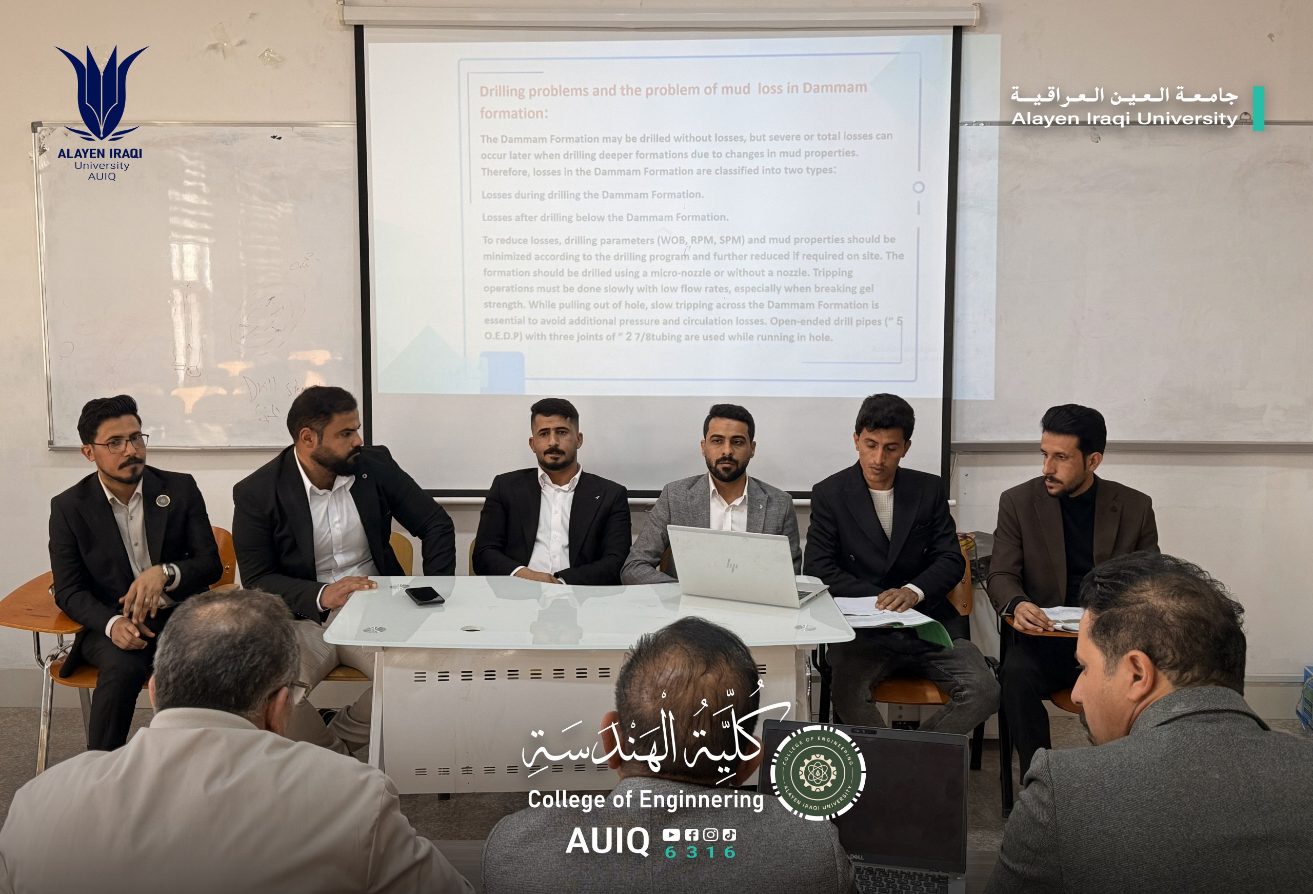 In the context of meeting the graduation requirements for fourth-year students, the College of Engineering at Al-Ayen Iraqi University conducted its semi-annual evaluation of the graduation projects of petroleum engineering students. This evaluation aimed to assess the progress achieved and monitor the scientific and practical advancements in their research projects.